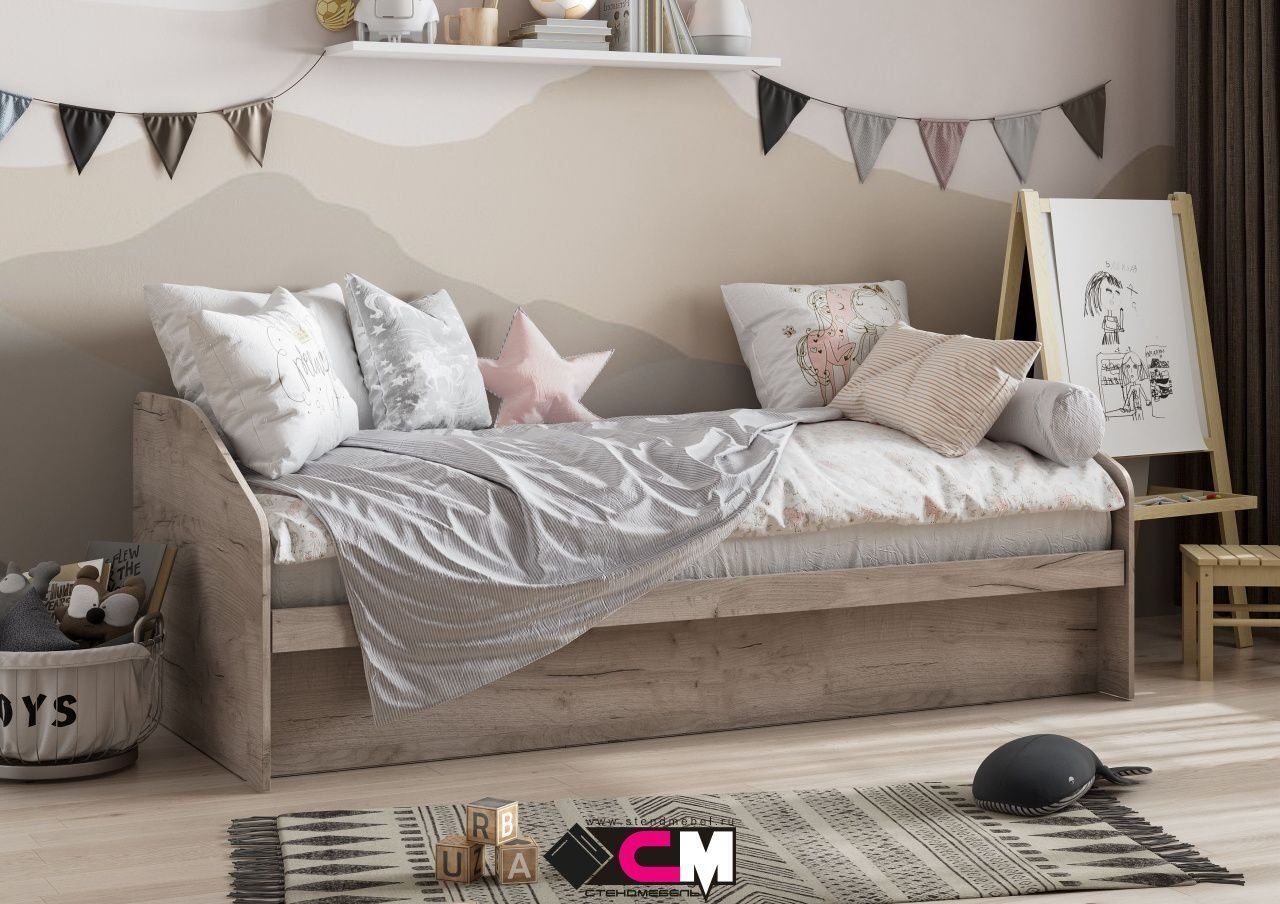 В комплекте: выдвижной ящик, бортик. Спальное место: 80х160 см. Материал: МДФ.