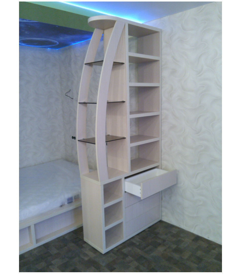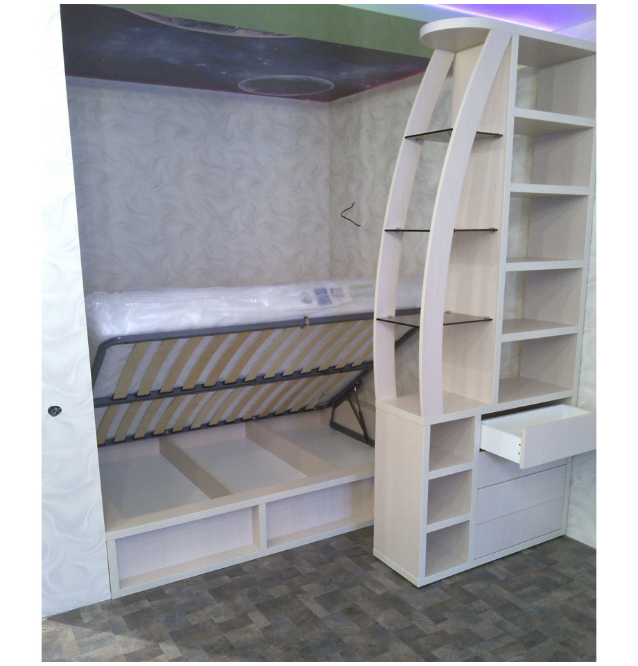 Оснащена вместительными шуфлядками, а так же ступенями-комодом.