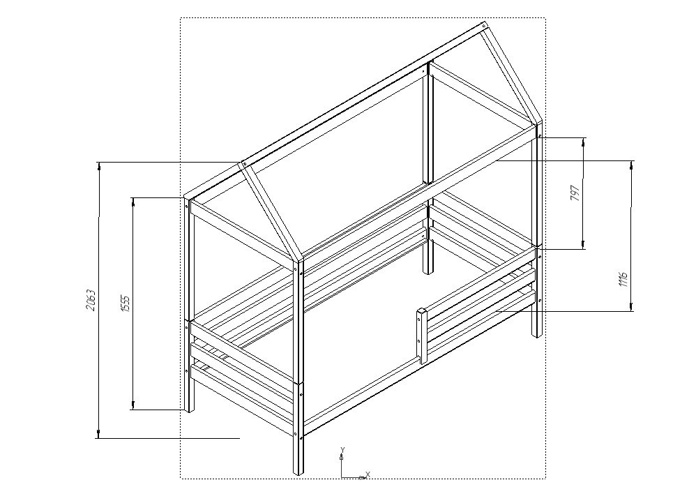 Кровать-домик «Альф со съемной крышей» 80х180 (массив сосны)