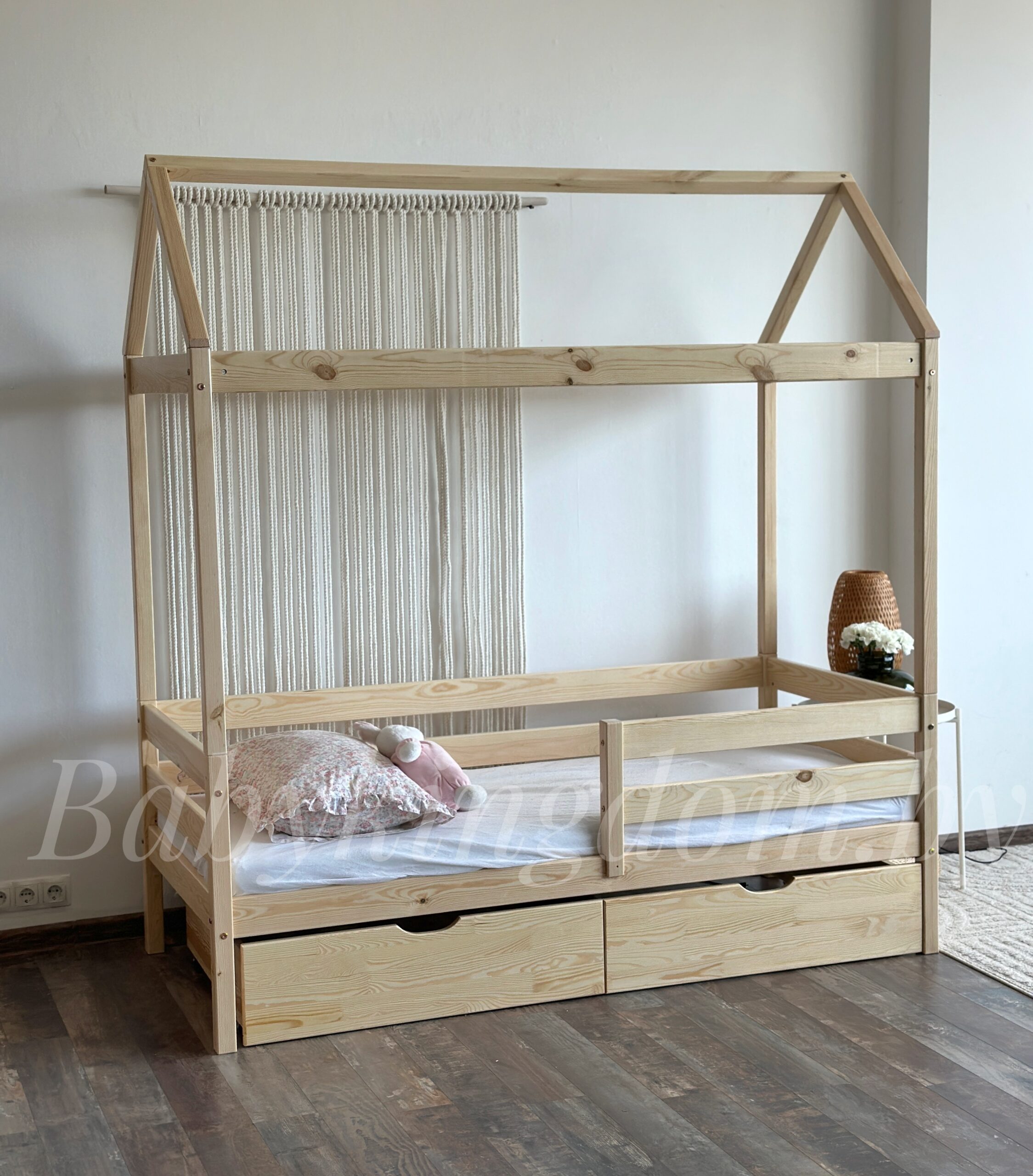Кровать-домик “Альф” из массива сосны с ящиками и съёмной крышей не только служит местом для комфортного отдыха и сна вашего малыша, но и становится центром его игрового мира, где каждый день наполнен чудесами и весельем. Подарите своему ребенку эту уникальную кровать, и он будет бесконечно радоваться и изучать мир вокруг себя, окружённый уютом и красотой этого удивительного домика!
