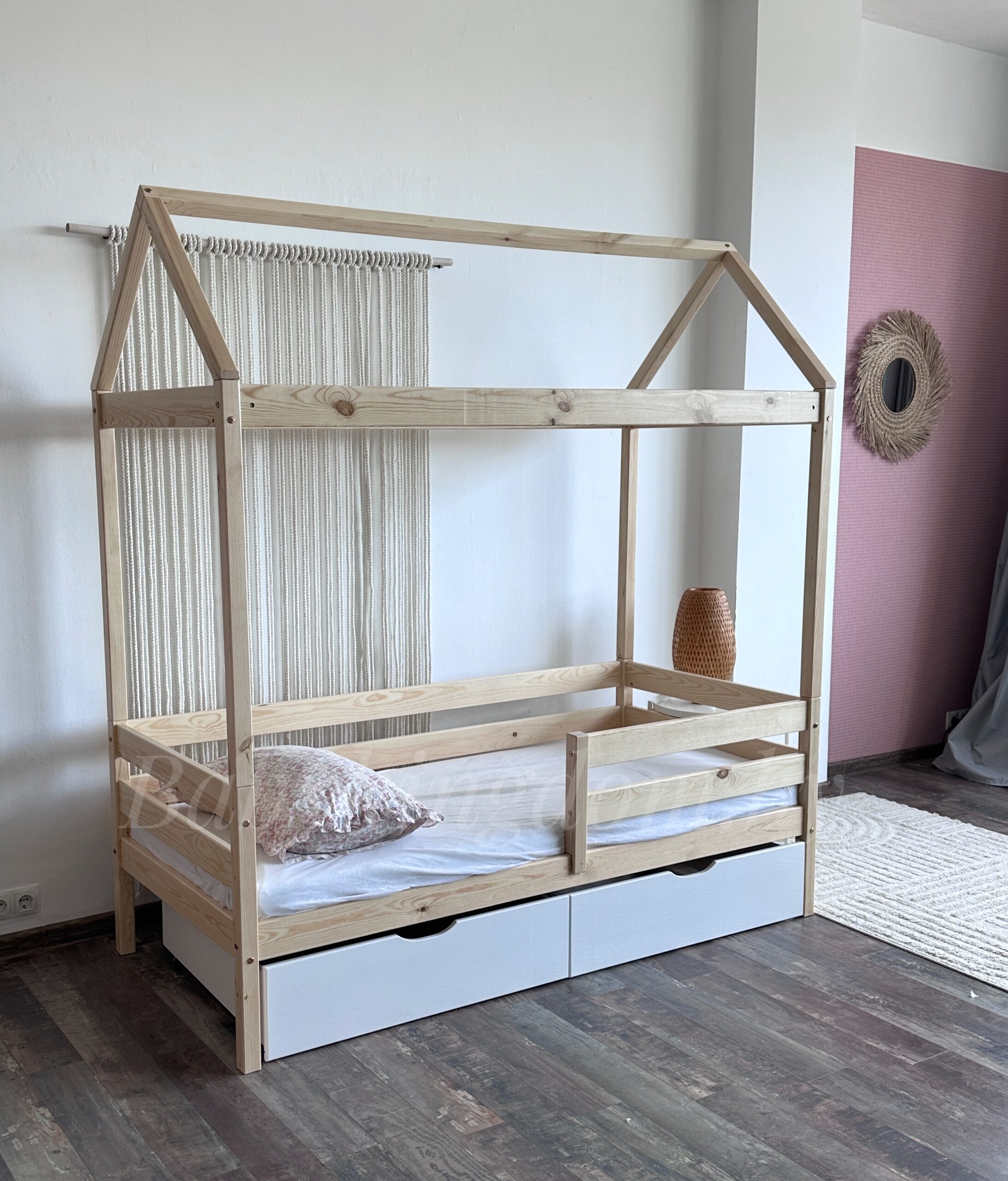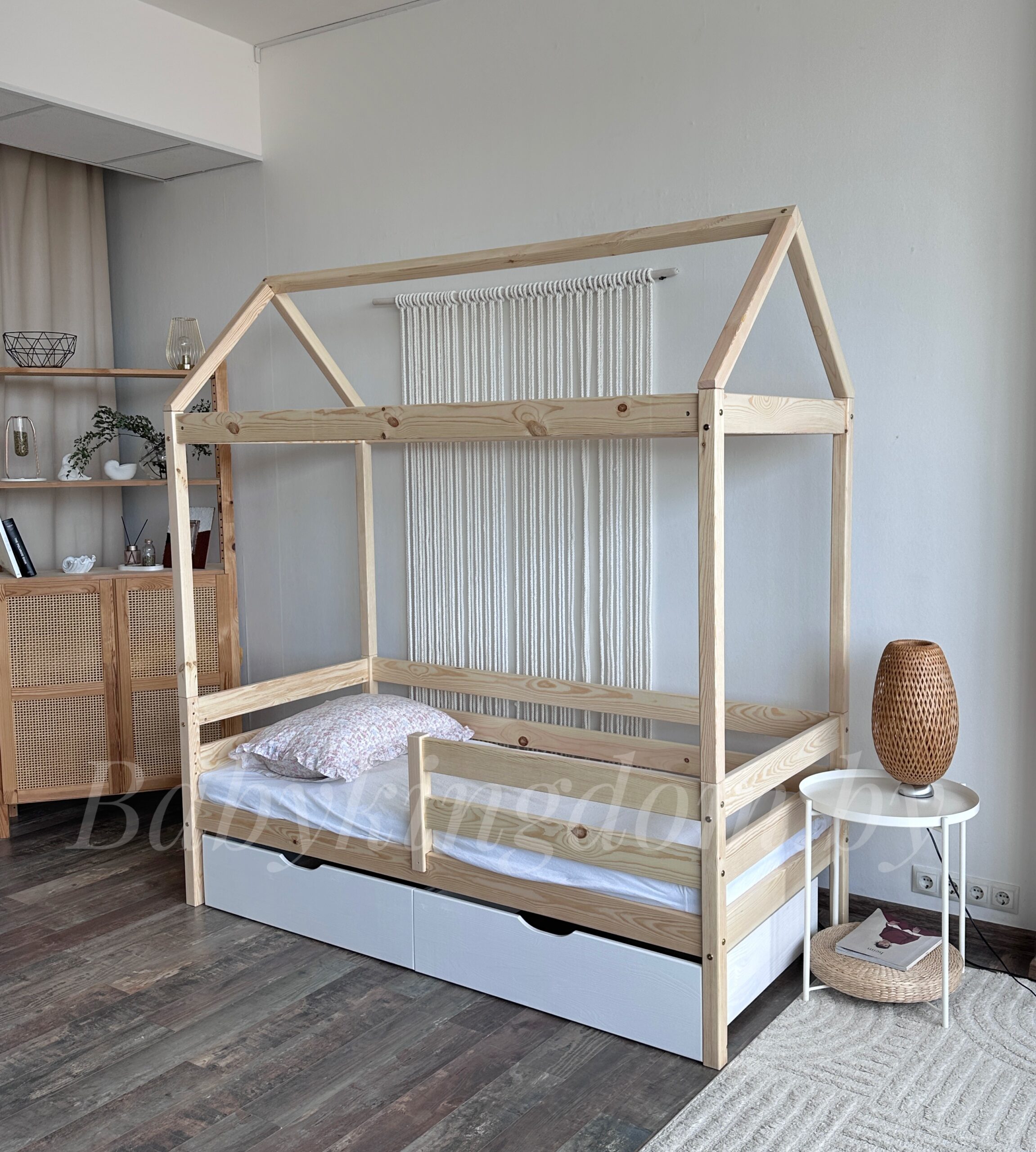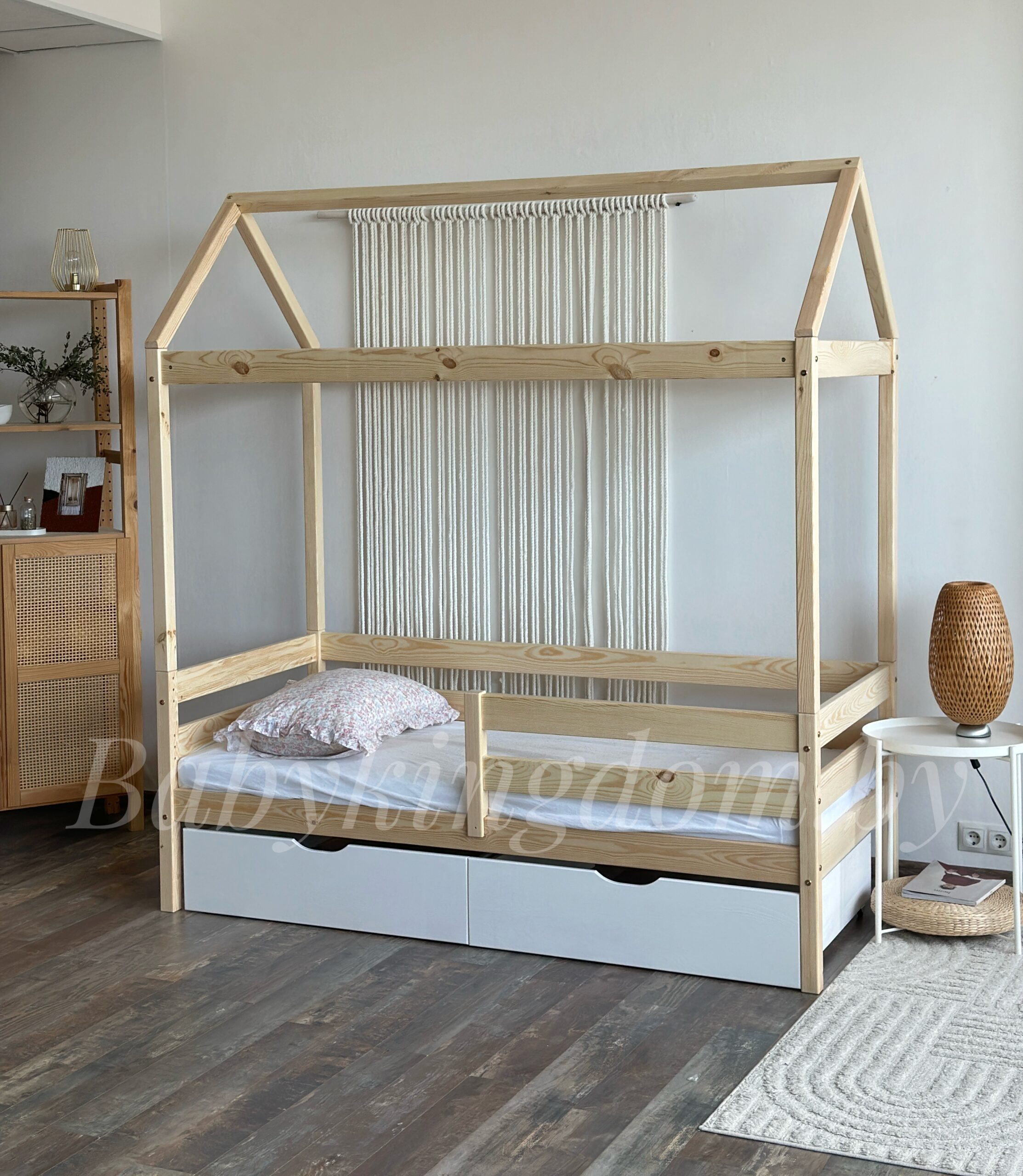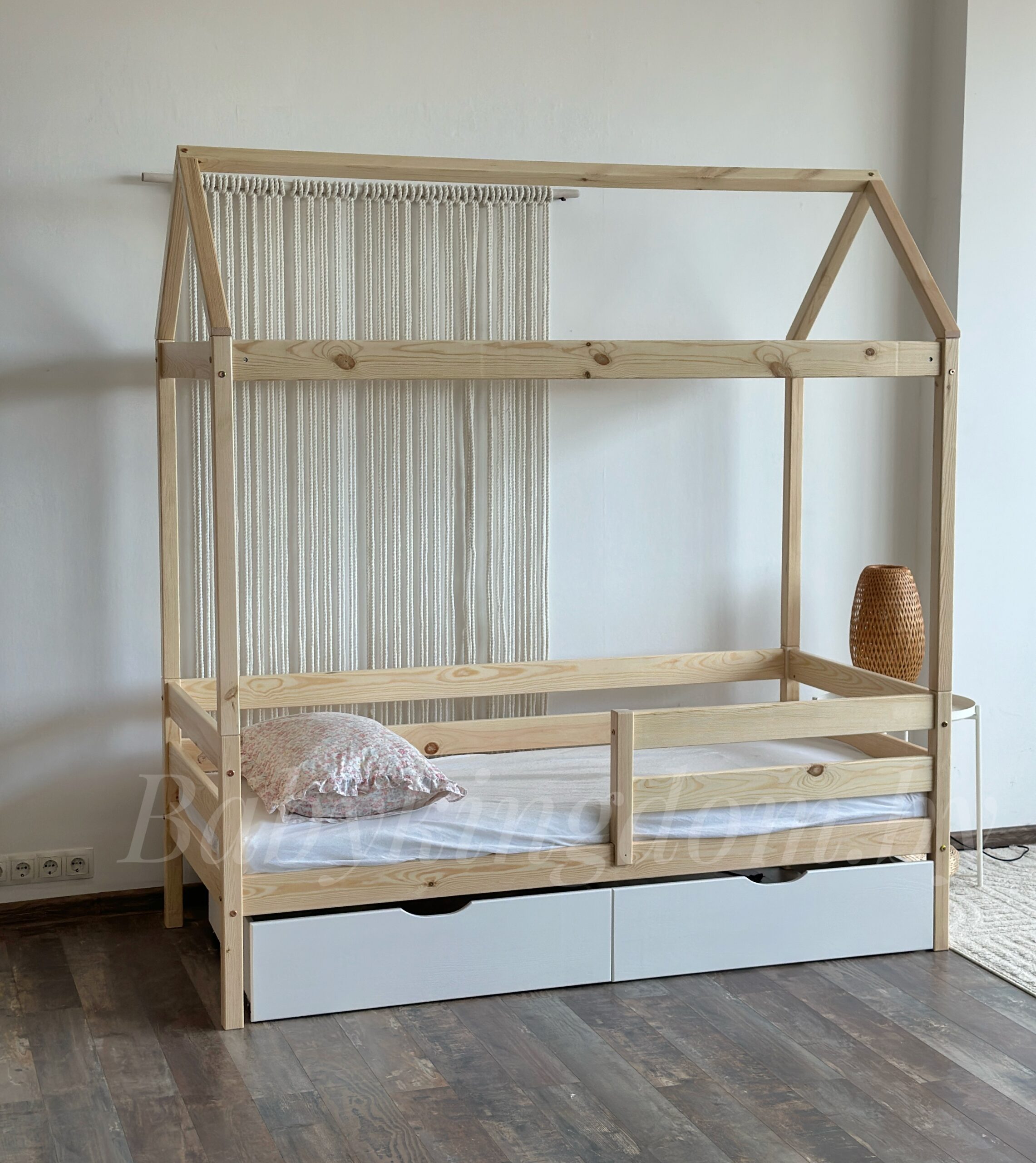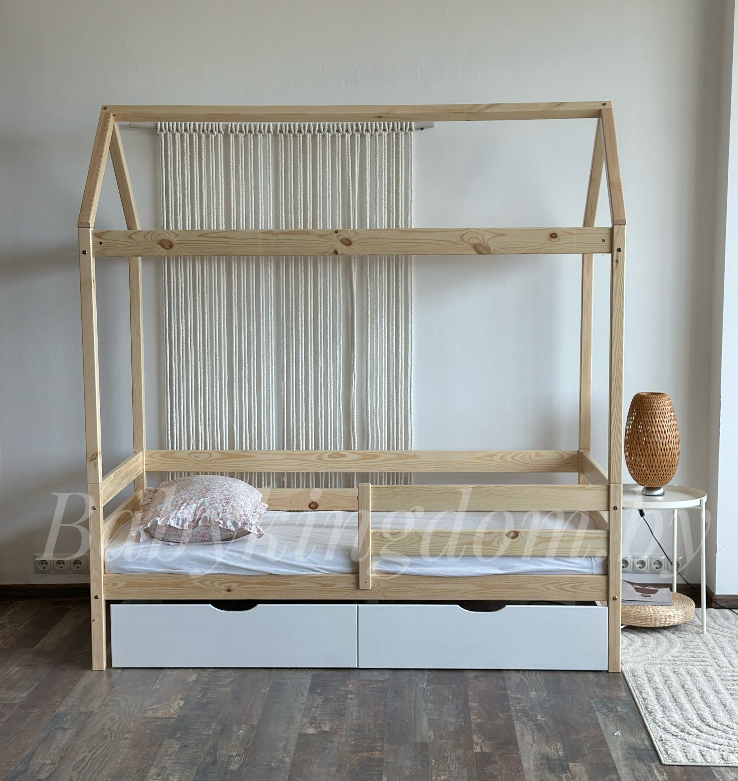 Кровать-домик “Альф” из массива сосны с ящиками и съёмной крышей не только служит местом для комфортного отдыха и сна вашего малыша, но и становится центром его игрового мира, где каждый день наполнен чудесами и весельем. Подарите своему ребенку эту уникальную кровать, и он будет бесконечно радоваться и изучать мир вокруг себя, окружённый уютом и красотой этого удивительного домика!