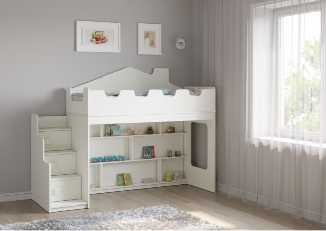 - Игровая зона под спальным местом станет отличным местом для развлечения вашего ребенка, а мягкий противоударный кант и отсутствие острых кромок обеспечивают дополнительную безопасность при использовании.