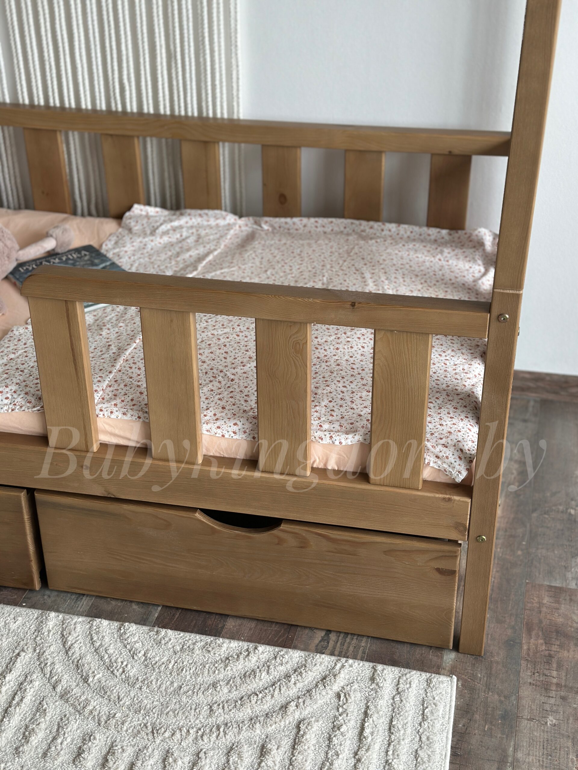 Особенностью этой модели кровати являются встроенные ящики, которые позволяют эффективно использовать пространство и хранить игрушки, одежду, постельное белье и другие вещи. Такой функционал позволяет поддерживать порядок в комнате и обеспечивает дополнительное место для хранения, что очень важно для детской комнаты. Ящики легко выдвигаются благодаря колесикам, поэтому ребенок сможет использовать их самостоятельно!