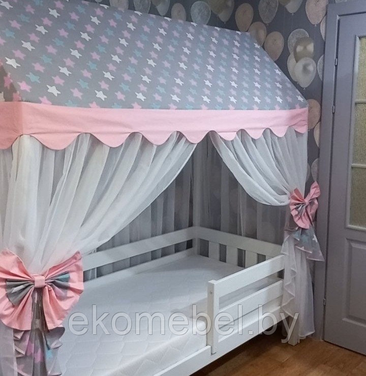 В стоимость кровати входят: реечный настил, бортик и крыша.