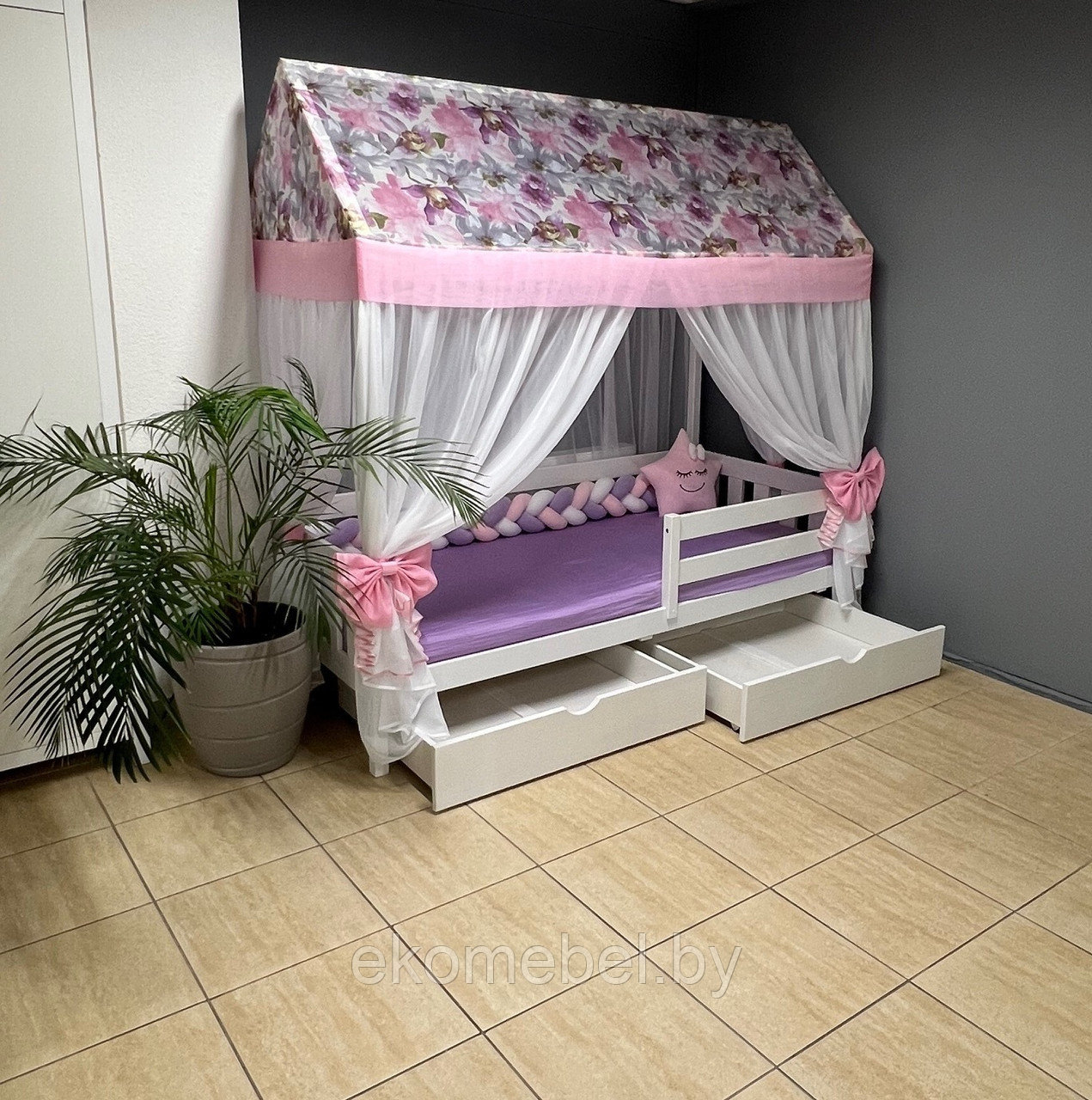 Кровать-домик «Киндер» с ящиками и доп. бортиком (80х180, 90х200 см) Массив сосны