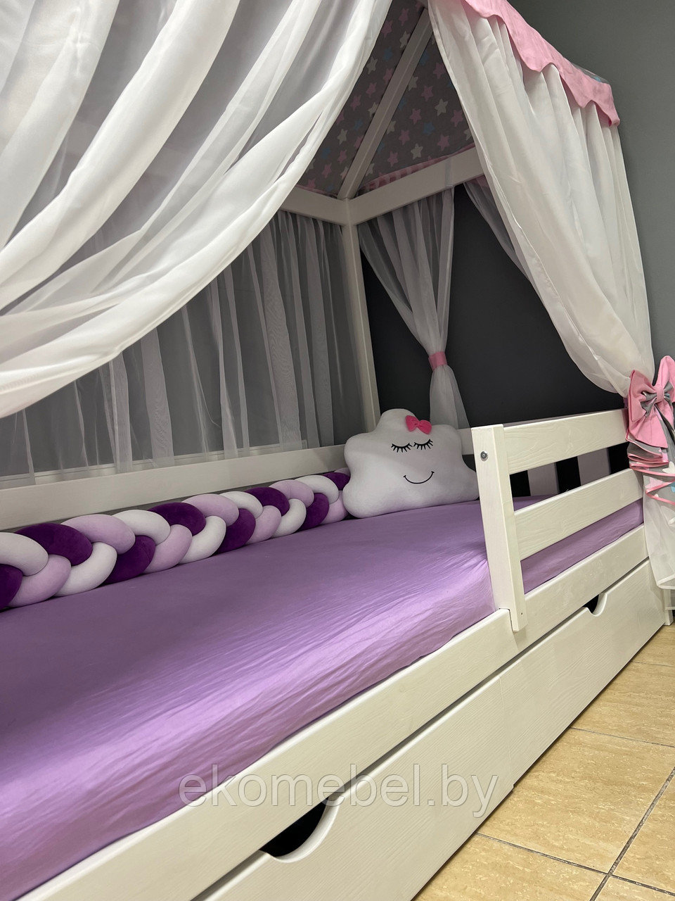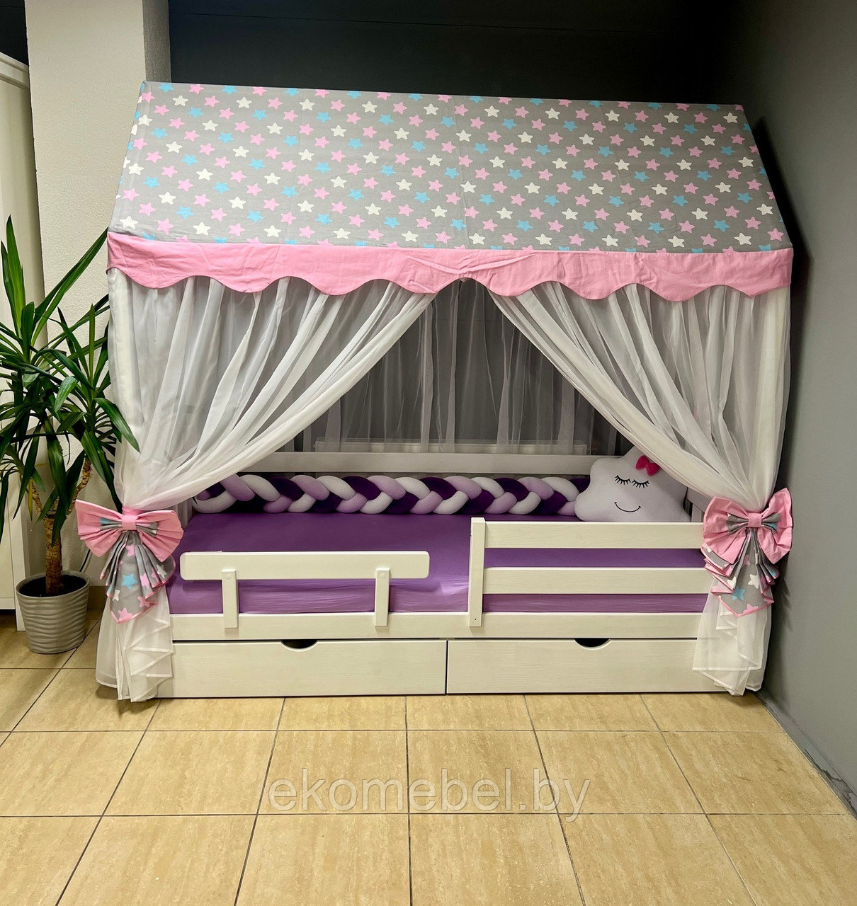 В стоимость кровати входят: реечный настил, бортик и крыша.
