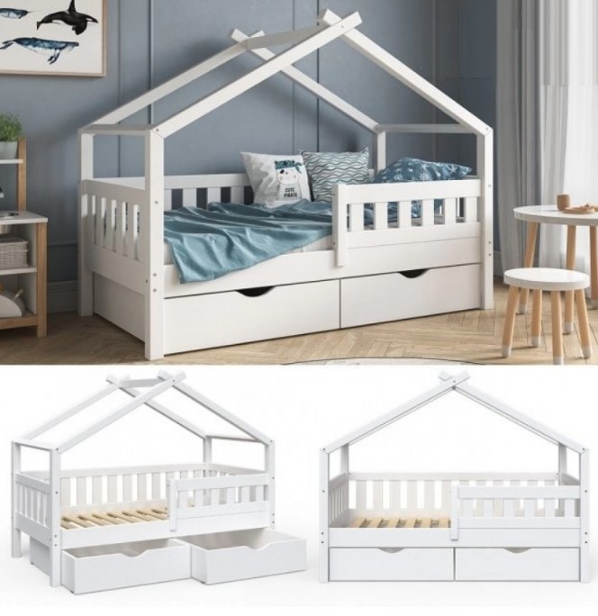 Кровать-домик «Малыш» с выдвижными ящиками 160х80 (белая) Ф-141.11