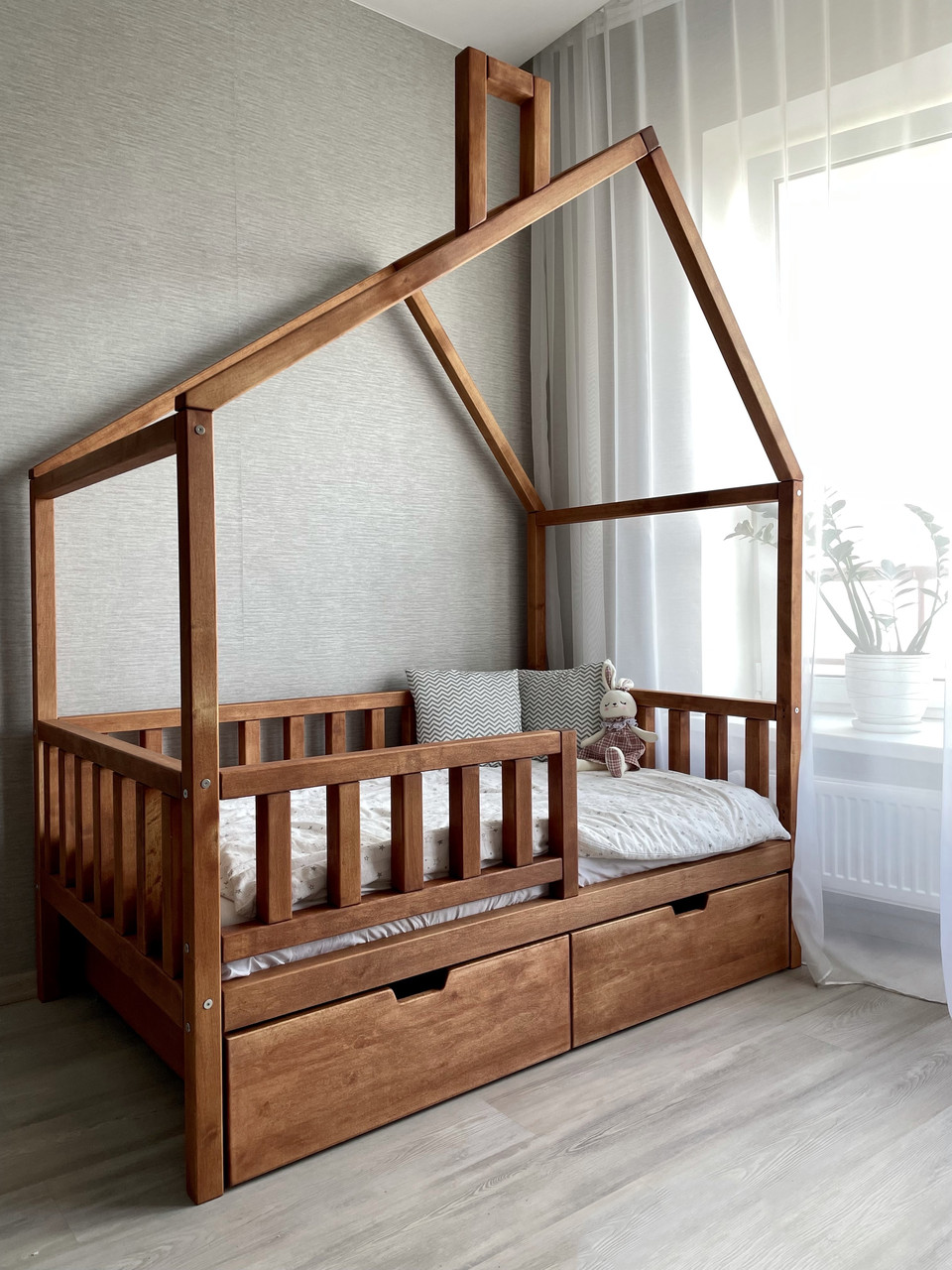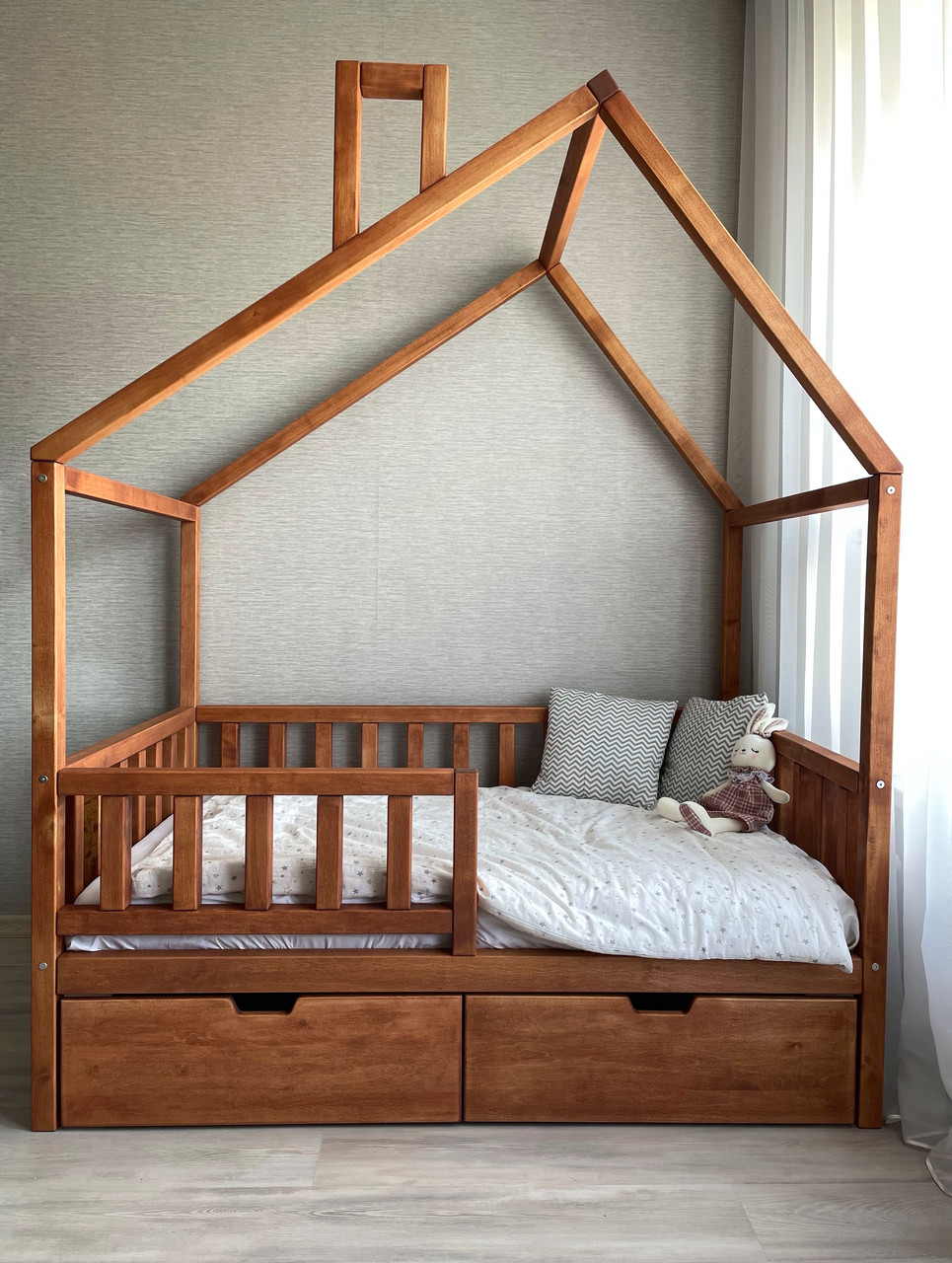 Детская и подростковая кровать домик "Лотос-7.1" изготовленная из массива сосны, мечта каждого ребенка. Её хотят не только малыши, но и подростки, ведь эта очень стильная и современная кровать. Правильно подобрав элементы декора Вы мягко говоря удивитесь, как гармонично и интересно она будет смотреться, а в глазах Вашего чада будет столько радости и благодарности, что Вы точно не пожалеете о ее покупки! А выкатные ящики внизу кровати идеально подойдут для хранения игрушек или постельного белья!