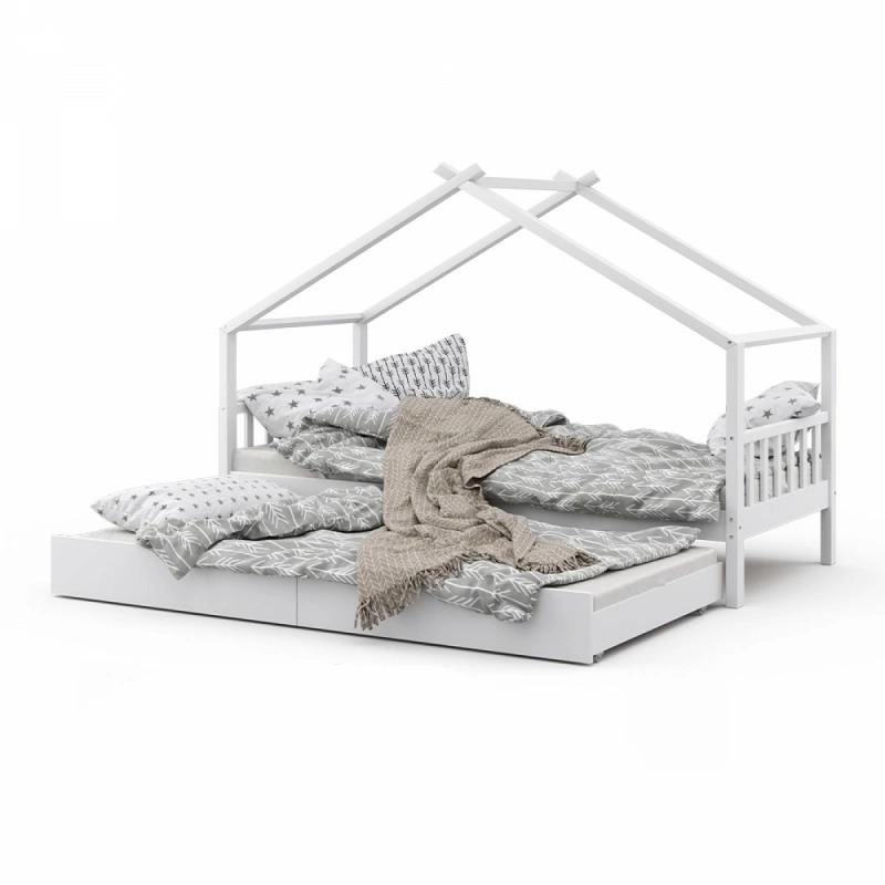 Кровать-домик с выдвижным ложе «Малыш» 200х90 (белая) Ф 141-21