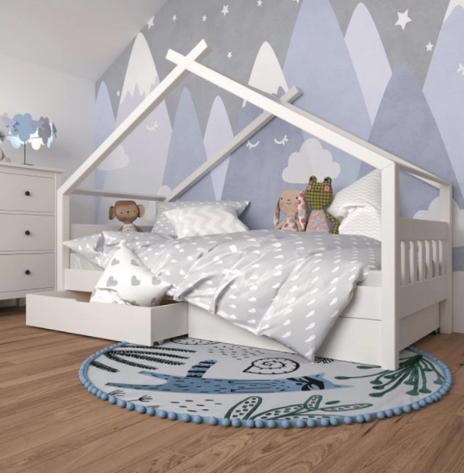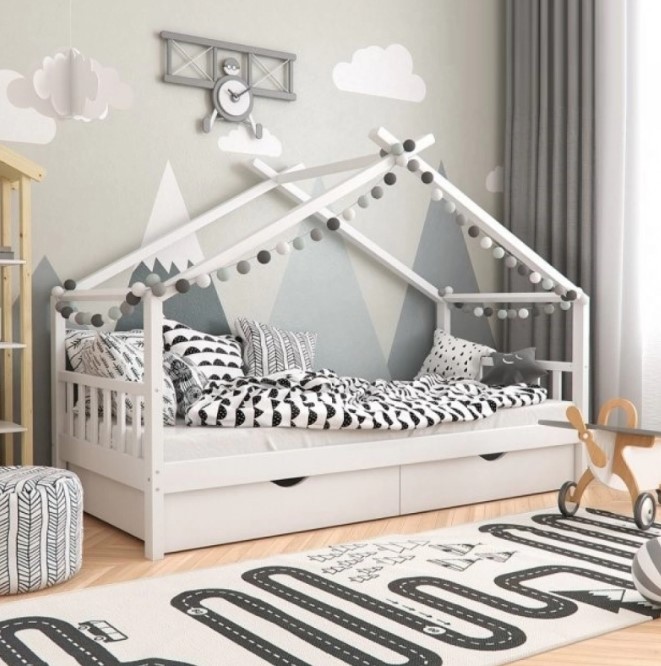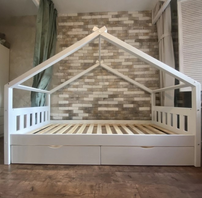 Кровать-домик с выдвижными ящиками «Малыш» 200х90 (белая) Ф 141-11