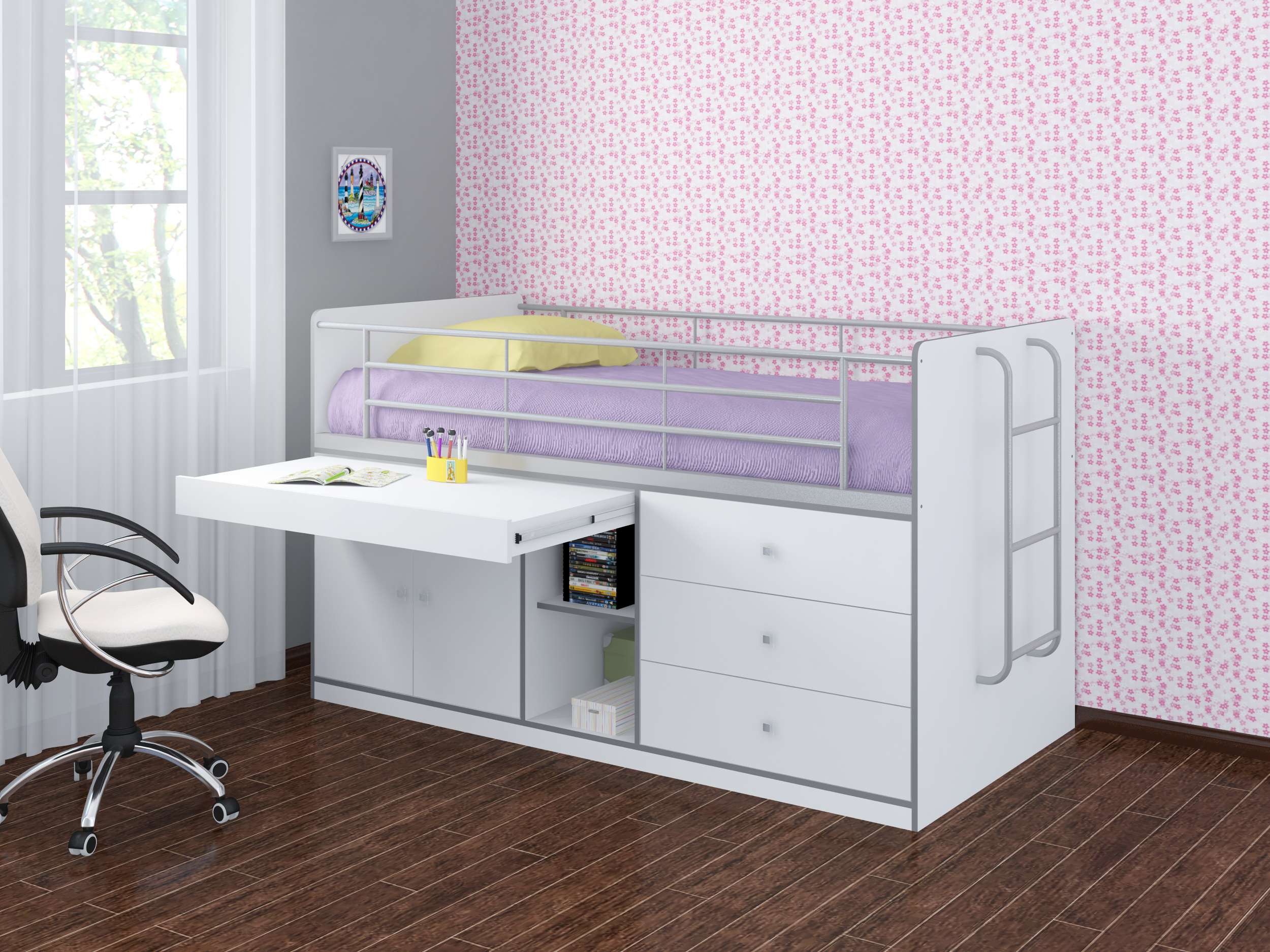 Стильная и современная кровать-чердак — экономия пространства в Вашей детской или подростковой комнате, выбирая подходящий цвет, кровать можно заказать как для девочки так и для мальчика.