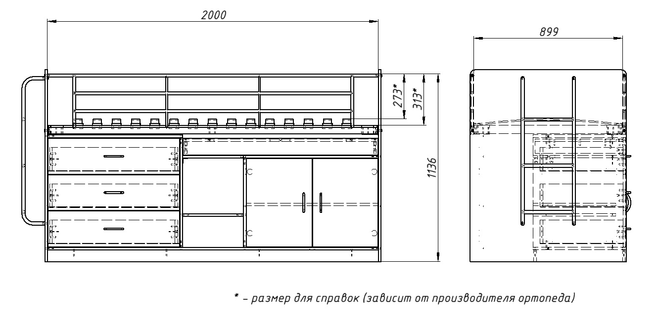 Размер: 1902x850x655 мм (матрац 800х1860). Материал: ЛДСП.