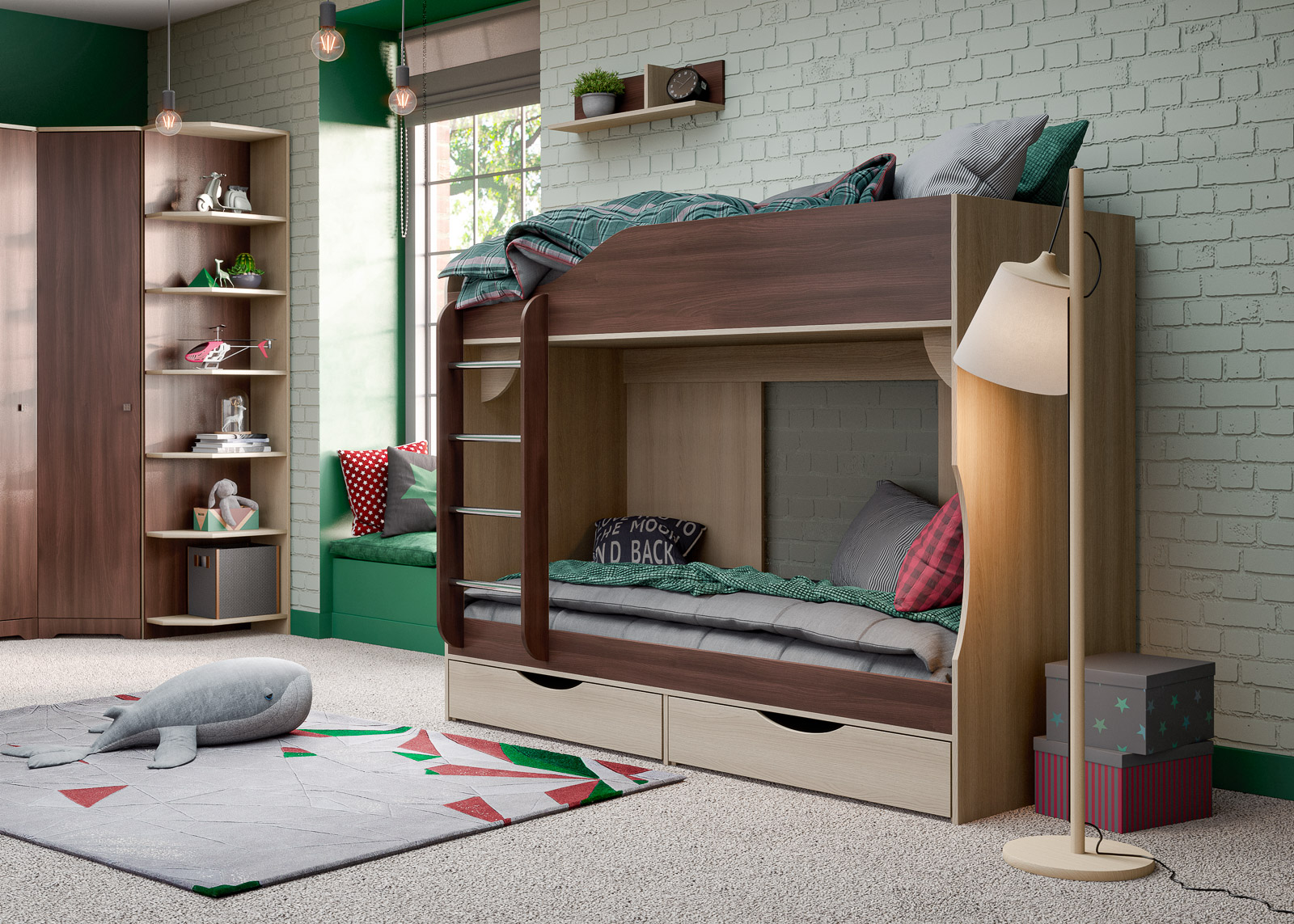 Спальные места: 70х140, 80х160, 80х180 см. Материал: ЛДСП.