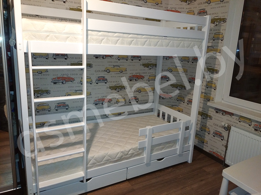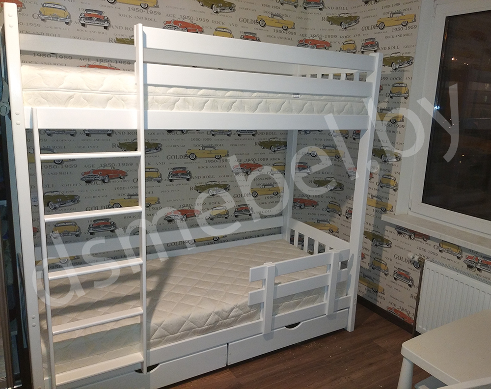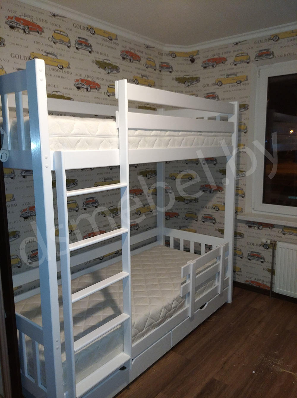 Кровать, выполненная из качественного массива сосны, подарит вашим детям здоровый сон. Конструкция оснащена безопасной лестницей для подъема на верхний ярус и имеет защитные от падения бортики. Высокие ножки делают данную модель еще более устойчивой и надежной.