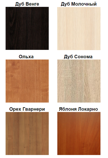 Цвета изготовления: дуб молочный, ольха, кальвадос (яблоня), орех, дуб сонома, комбинированный (венге темный\дуб молочный), ваниль\(дуб молочный )\ салатовый, голубой, коралл.
