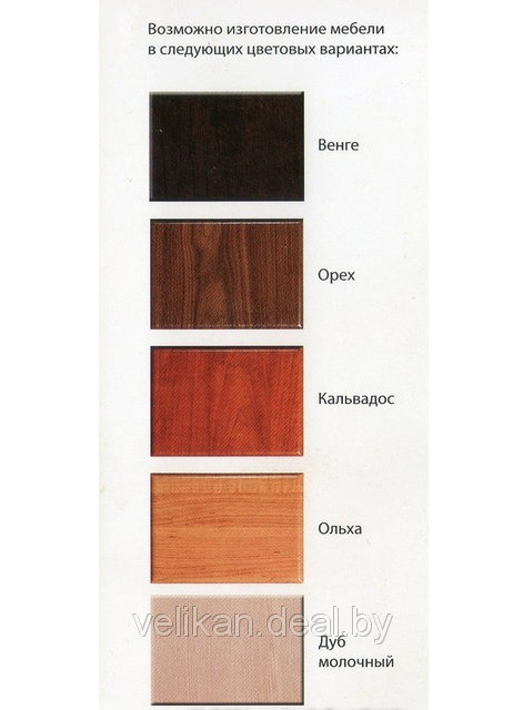 Цвета изготовления: дуб молочный, ольха, кальвадос (яблоня), орех темный, слива, комбинированный (венге темный\дуб молочный).