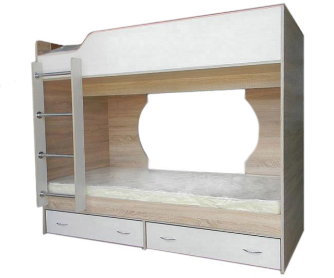 код 112141Недорогая двухъярусная кровать. Внизу два выкатных ящика.