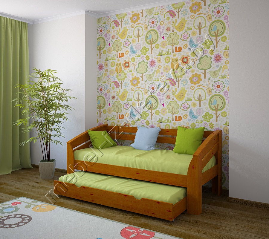 Модель отлично подойдет для экономии свободного пространства в комнате. Конструкция совмещает два комфортных независимых спальных места. Внешний дизайн кровати напоминает тахту, отличающуюся легкостью и компактностью.
