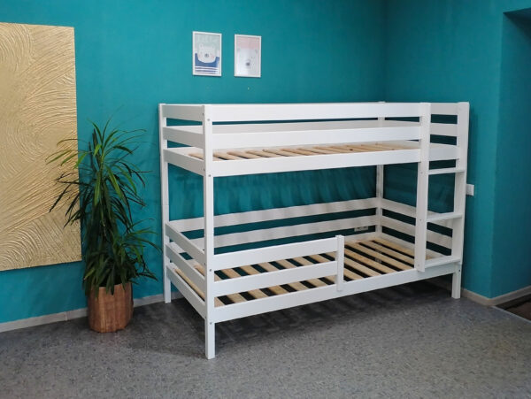 Двухъярусная кровать из массива березы «Вуди-4» без ящиков (белый)
