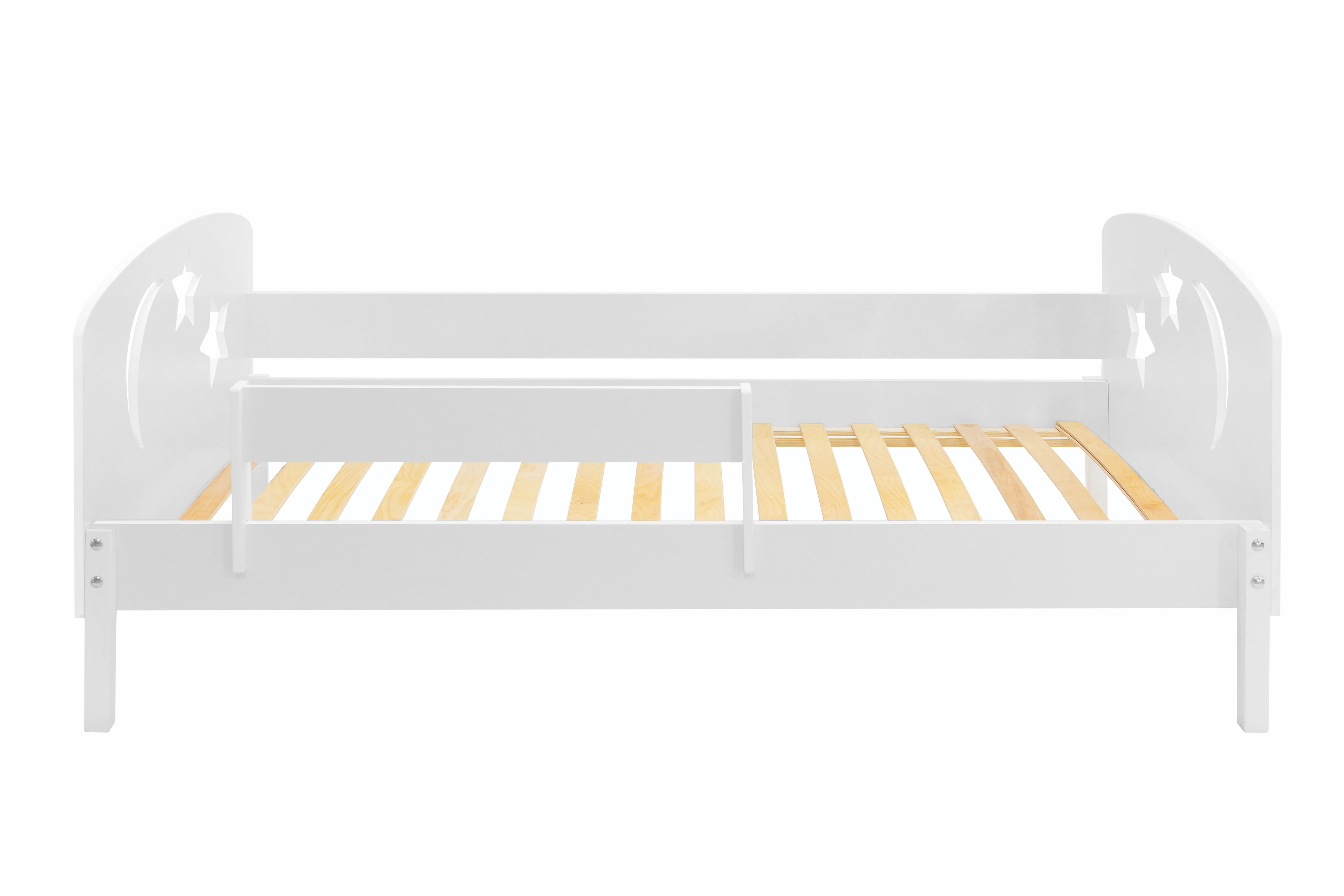 Может быть собрана двумя отдельными кроватями с бортиком.