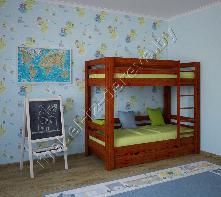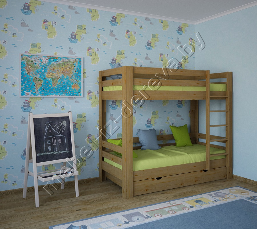 Двухъярусная кровать «Альма» (80х160, 80х180, 80х2000, 90х160, 90х180, 90х200 см) Массив сосны