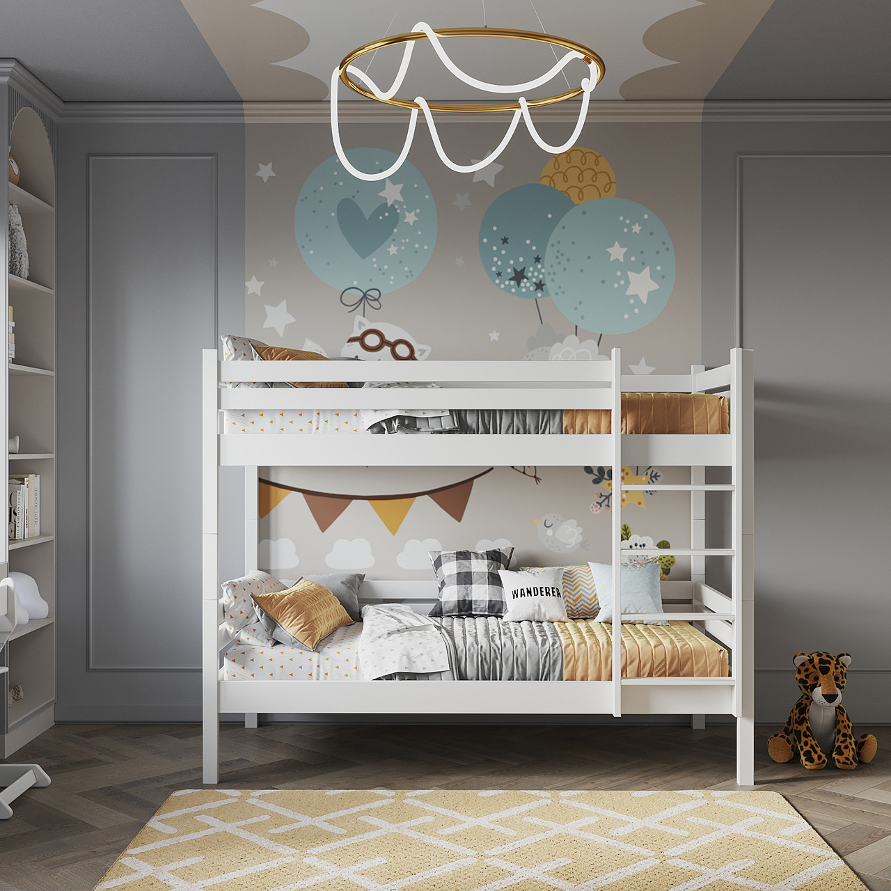 Двухъярусная кровать из массива сосны «Вуди-4» без ящиков (белый)