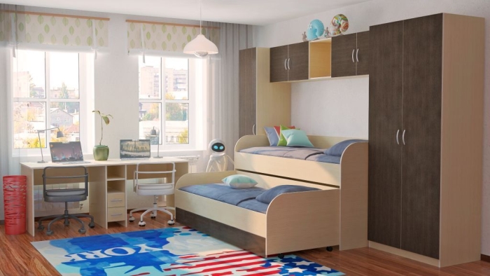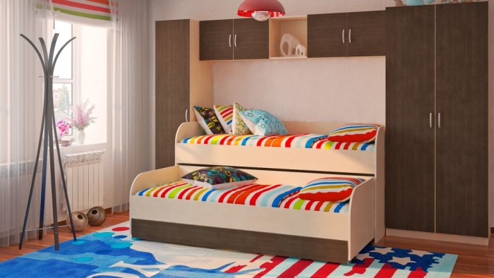 Кровать двуспальная для детской комнаты. Нижнее спальное место выдвижное.
