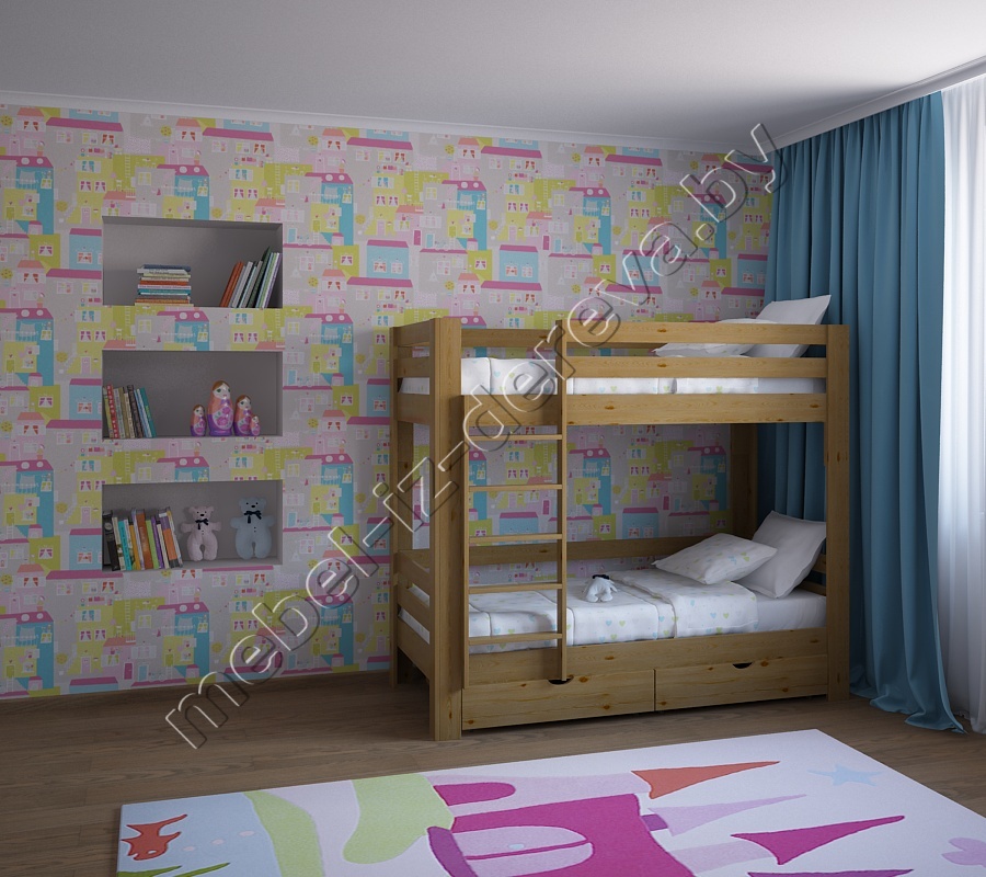 Двухъярусная кровать «Силач-Люкс» выполнена в современном стиле из натурального массива. Такая кровать будет актуальна при обустройстве небольшой комнаты, где важен каждый сантиметр свободного пространства. Для подъема на второй этаж предусмотрена надежная лестница. Нижний ярус укомплектован удобными ящиками для хранения постельного белья и других предметов.