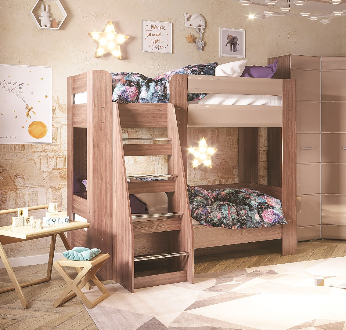 Кровать двухъярусная «Симба» (Кофе с молоком / Ясень)