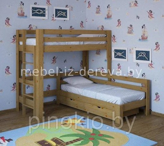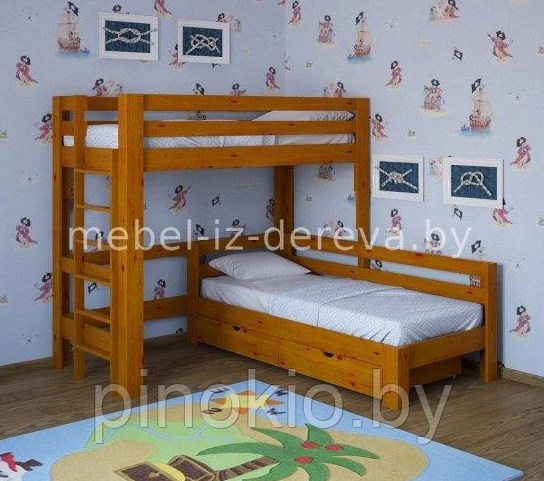 Кровать для двоих детей из массива березы «Вуди-14» (Лотос-24)