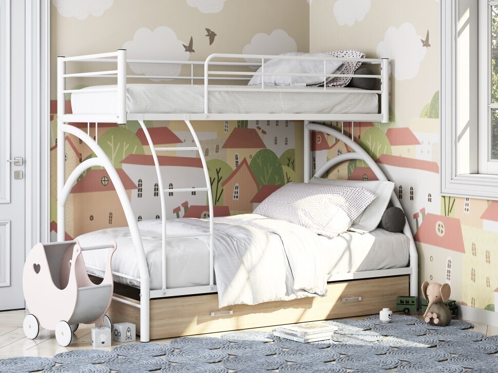 код 134304Металлическая двухъярусная кровать с ящиком для хранения. 4 цвета на выбор.