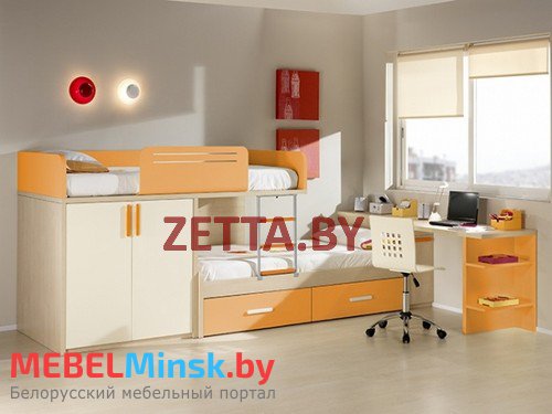 Яркая, просторная и эргономичная двухъярусная кровать, помимо двух спальных мест, включает в себя также несколько очень вместительных и удобных шкафчиков и выдвижных ящиков, которые позволят разместить в них очень большое количество вещей, игрушек и одежды. Яркие цвета мебели подарят детям радостное настроение и будут способствовать хорошему развитию и великолепной фатазии.