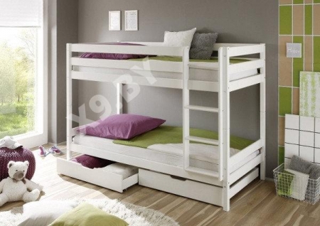 В комплекте: выдвижной ящик 2 шт. Спальное место: 90х200 см. Материал: массив сосны.