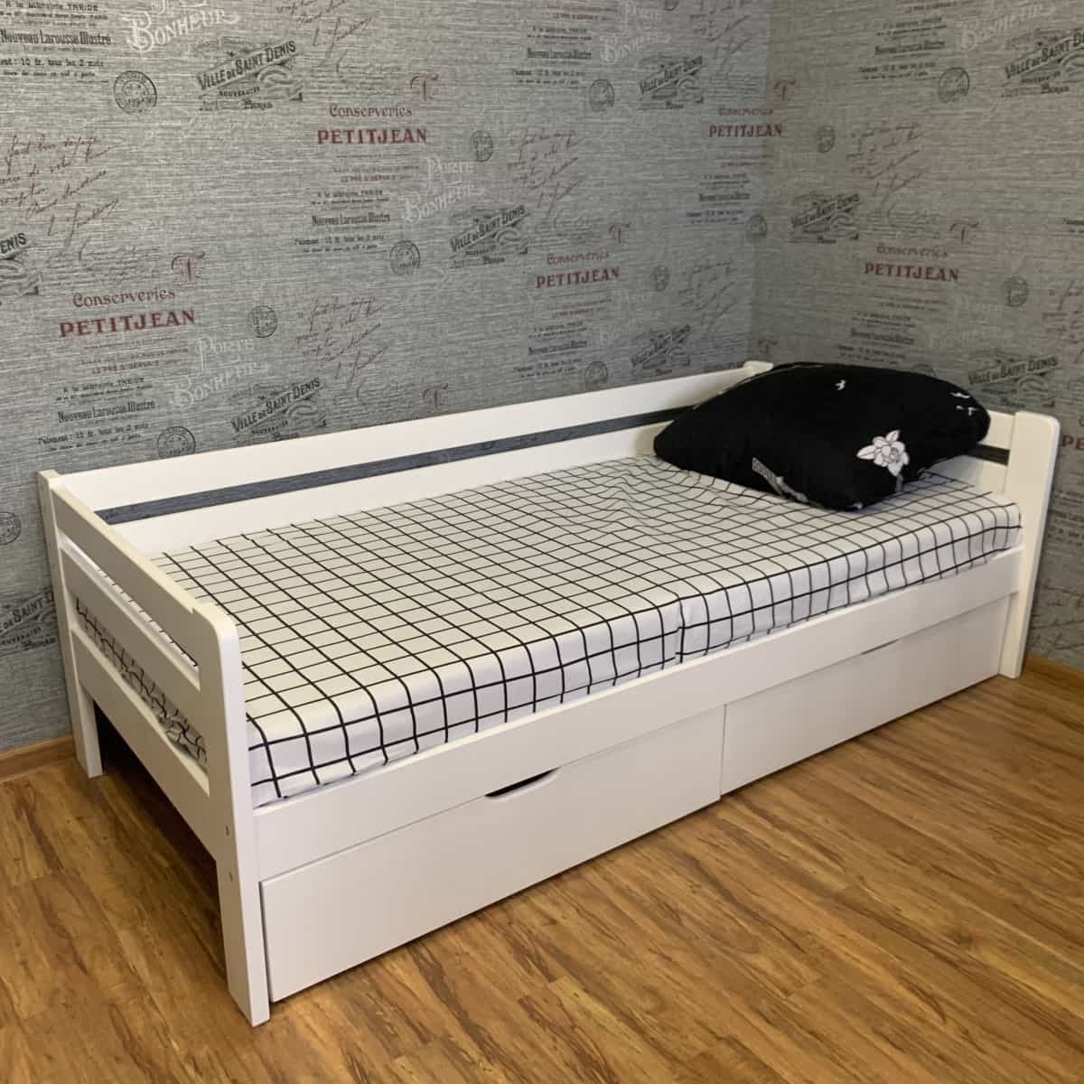 Односпальная кровать из березовой фанеры со съемным бортиком «Ecodrev МФ-2» (белая)