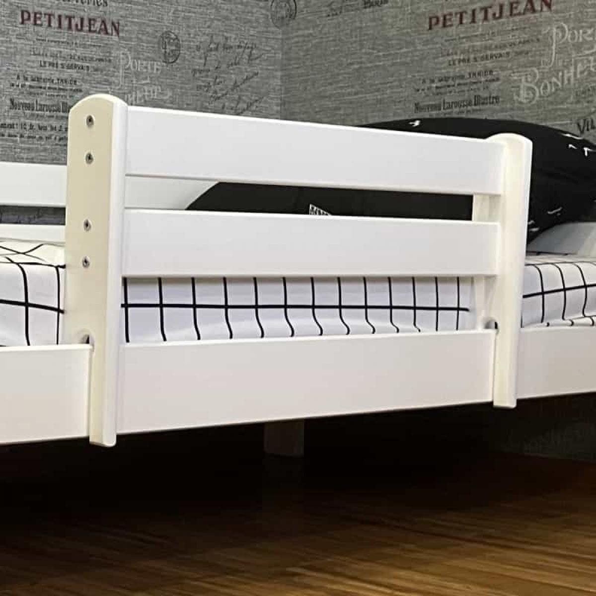 Детская односпальная кровать с бортиком Альф из массива сосны (белая) + матрас Kinder 4