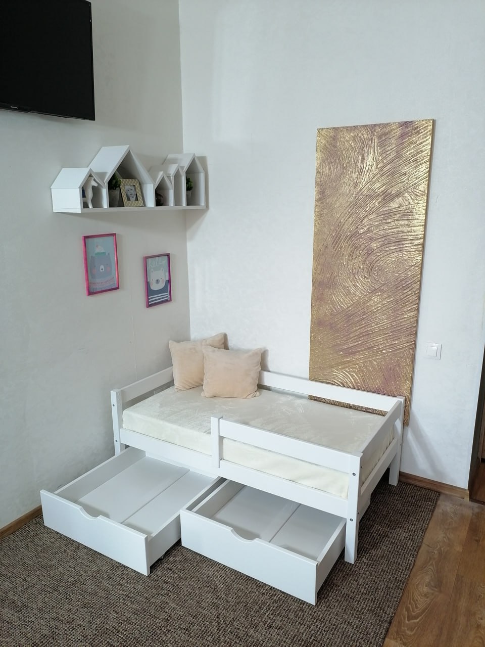 В комплекте: выдвижной ящик, бортик. Спальное место: 80х140 см. Материал: МДФ.
