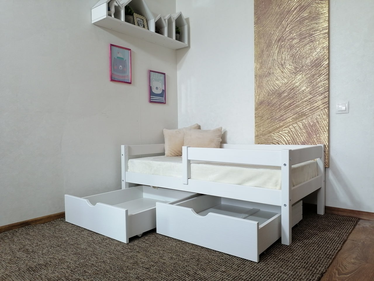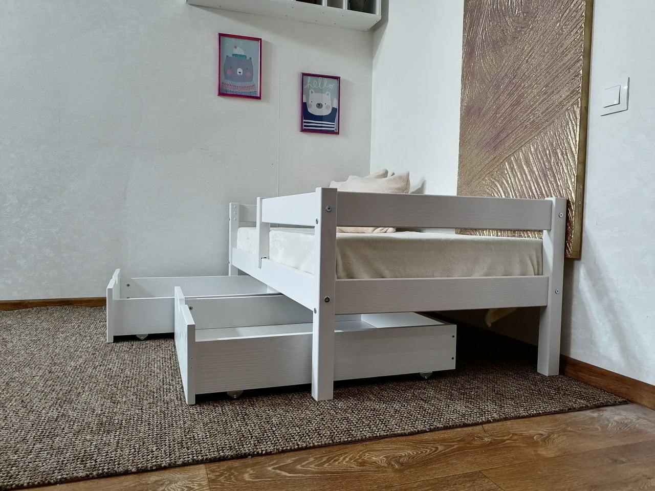Кровать «Эрни Литтл» 80x160, 80x180, 90x200 (с лесенкой и ящиками)(лак+белые ящики)