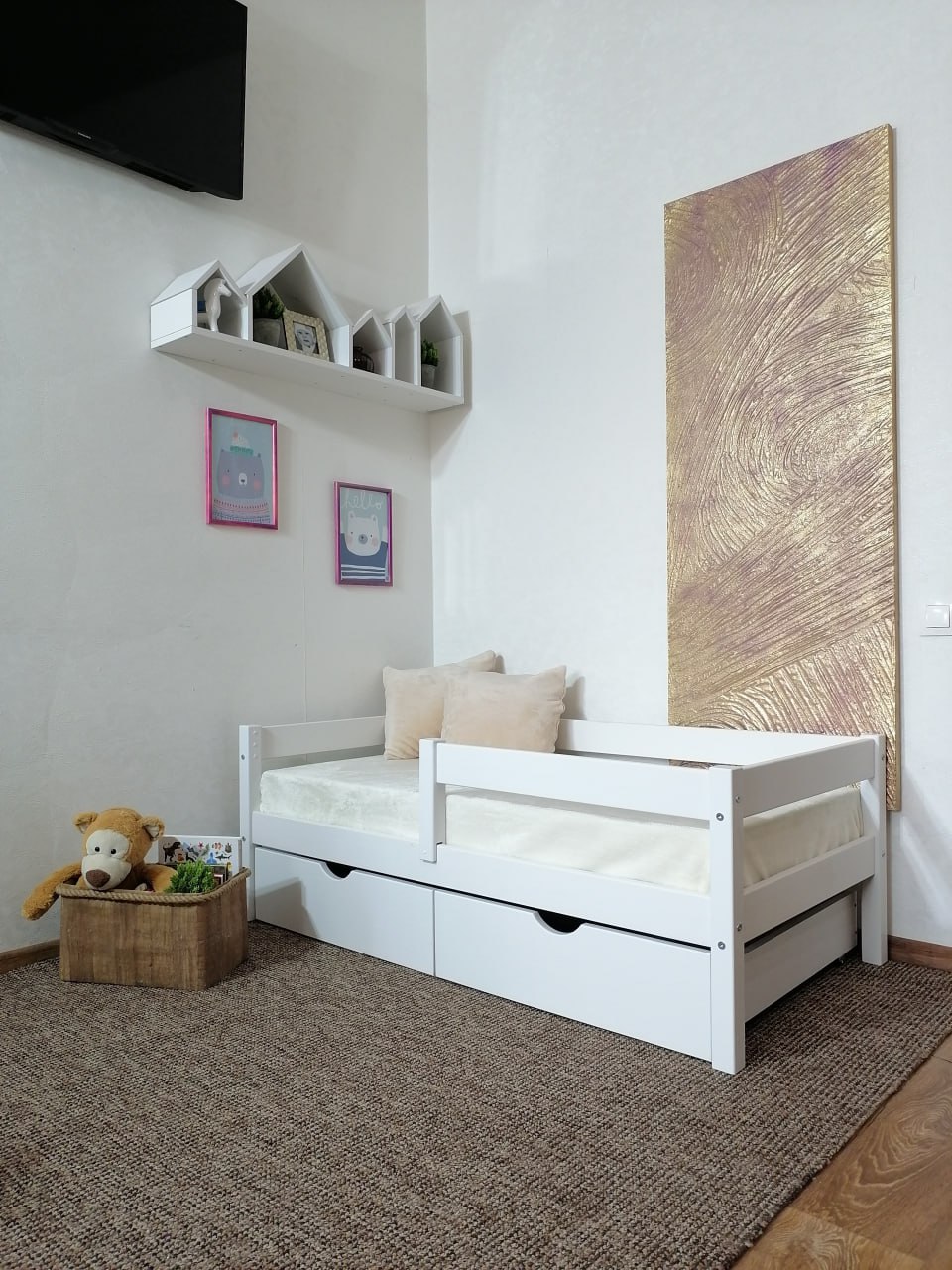 В комплекте: матрас, бортик, ступенька. Спальное место: 80х160 см.