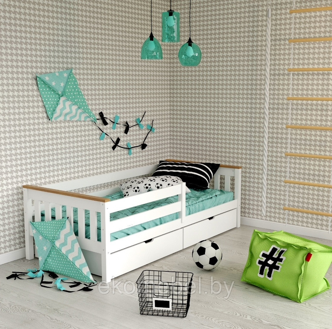 Кровать «Викки» с ящиками и бортиком (90х200 см) Массив сосны