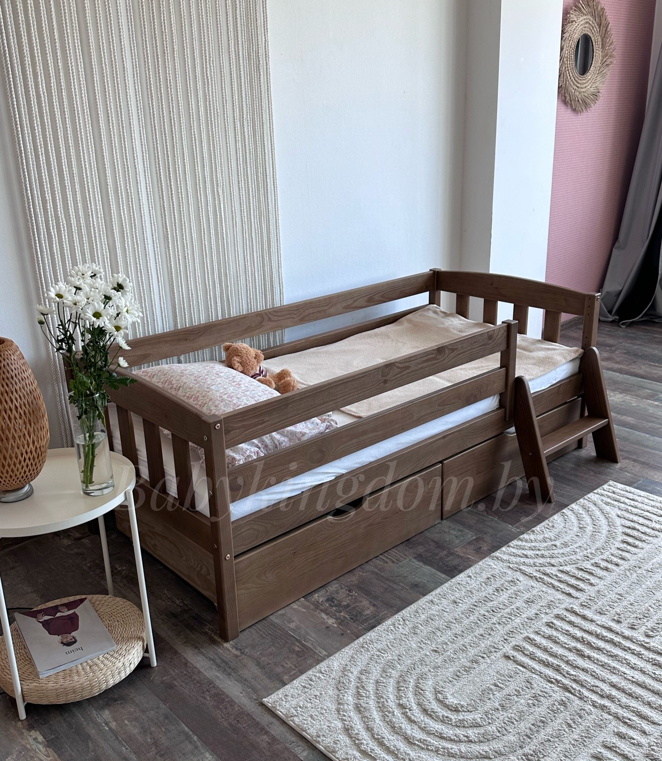 Детская односпальная кровать «Эрни Литтл» из массива сосны с ящиками для хранения – это незаменимая мебель в детской комнате. Она обладает всеми необходимыми функциями для комфортного и функционального использования по назначению (и не только).