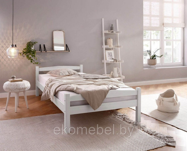 Кровать "Гольф" выполнена из массива сосны и покрыты белым воском