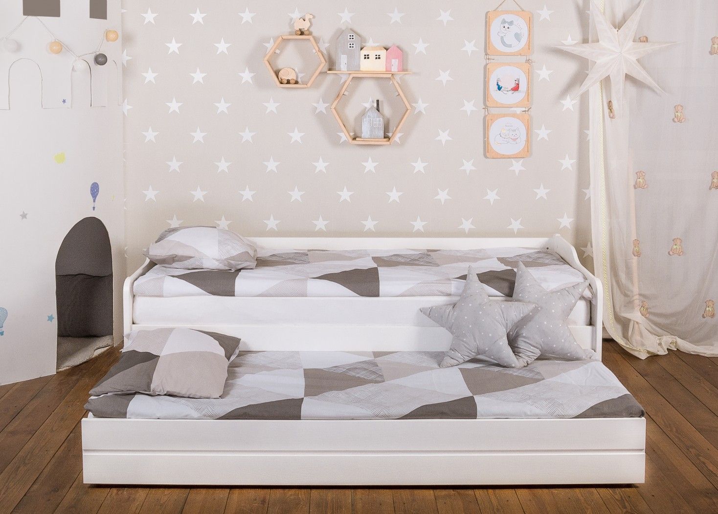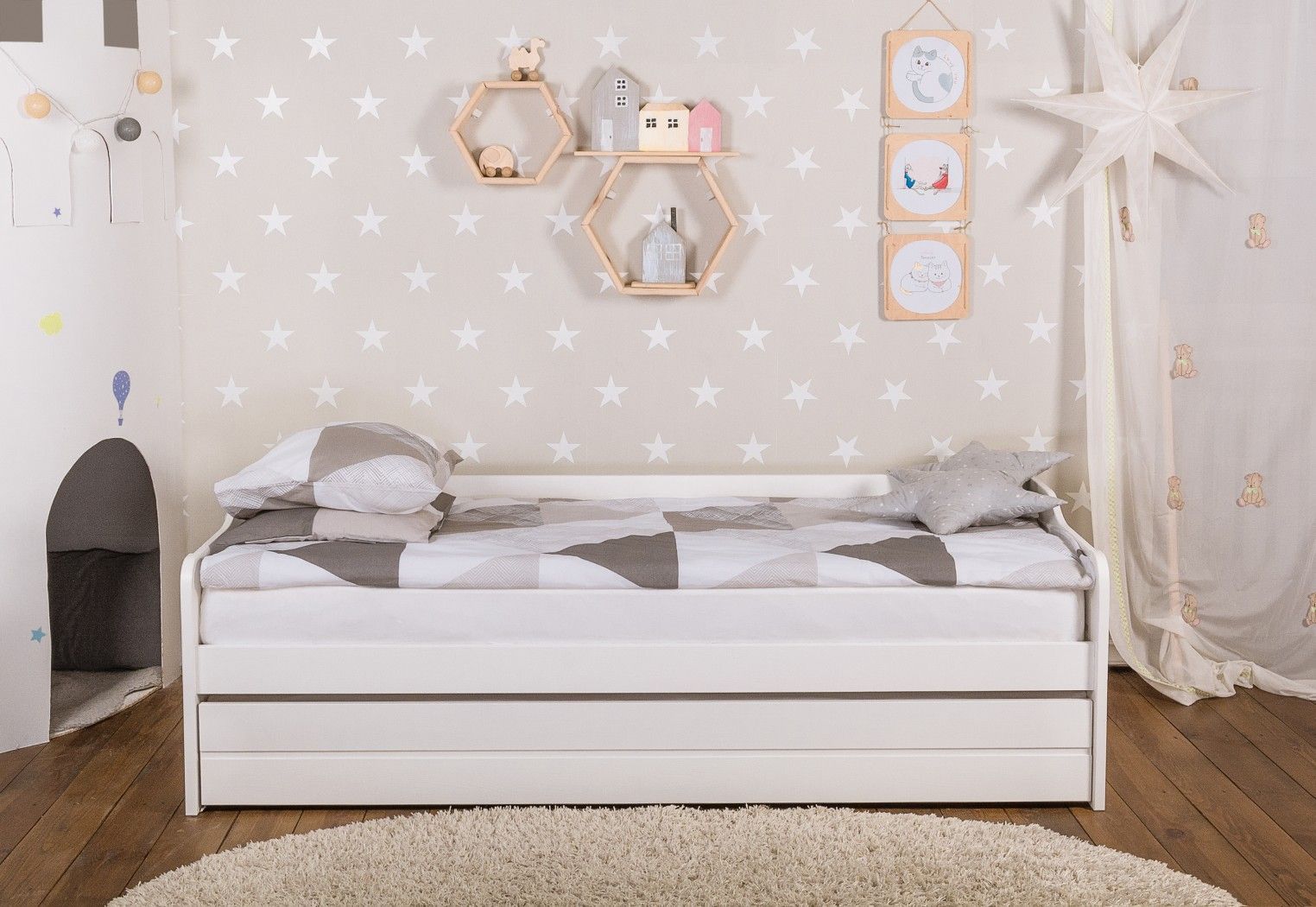 Кровать Ило - отличный вариант для детской. Удобная конструкция позволяет легко выдвинуть второе спальное место для второго ребенка или для неожиданных, но любимых гостей. Плюс экономия пространства в комнате. Универсальный вариант для квартиры или загородного дома.