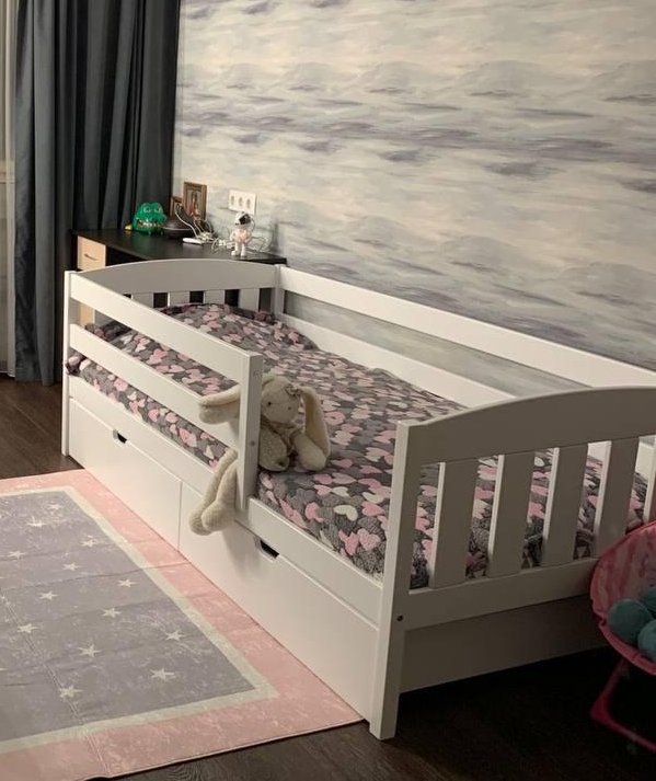 Детская односпальная кровать с ящиками для белья.