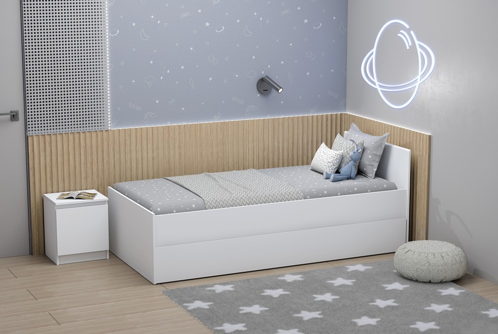 В комплекте: выдвижной ящик, бортик. Спальное место: 80х140 см. Материал: МДФ.