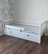 Односпальная кровать из массива сосны «Луна» с ящиками (лак+белый)