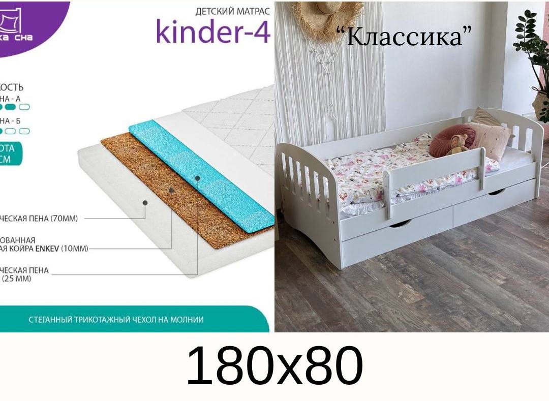 Кровать «Классика 80х180» (с бортом и ящиком) + матрас «Киндер-4 180х80»