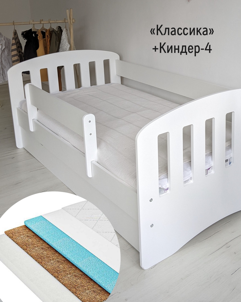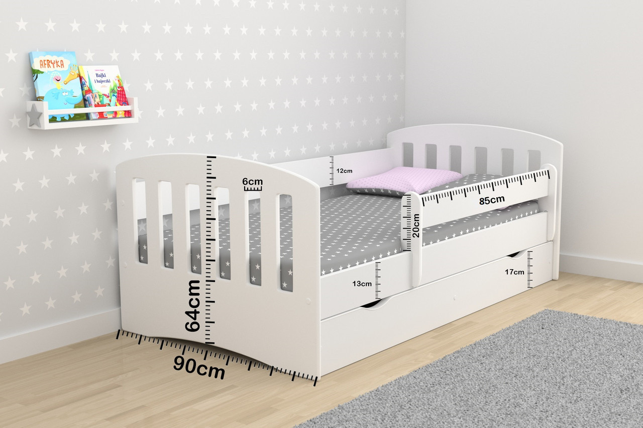 Оптимальная высота спального места от пола разработана для удобства и безопасности вашего ребенка. Съемный защитный бортик убережет ребенка от падения с кровати во время сна. Вместительный ящик станет дополнительным местом для хранения белья.