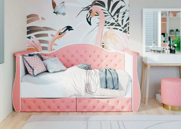 Основной – белый цвет сделает комнату светлее и визуально просторнее. Мягкая накладка в изголовье и скругленные углы делают Клио безопасной, а 2 вместительных бельевых ящика на роликовых опорах – функциональной.