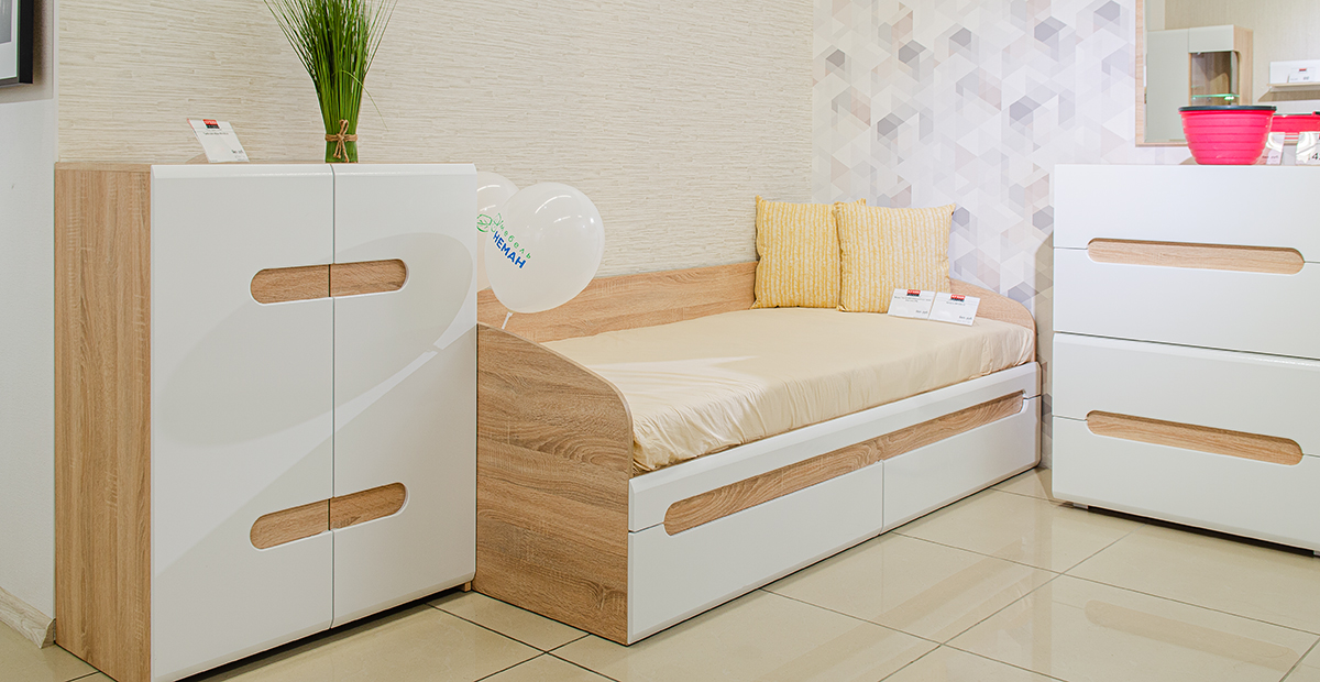 Спальное место: 90х200 см. Материал: ЛДСП.