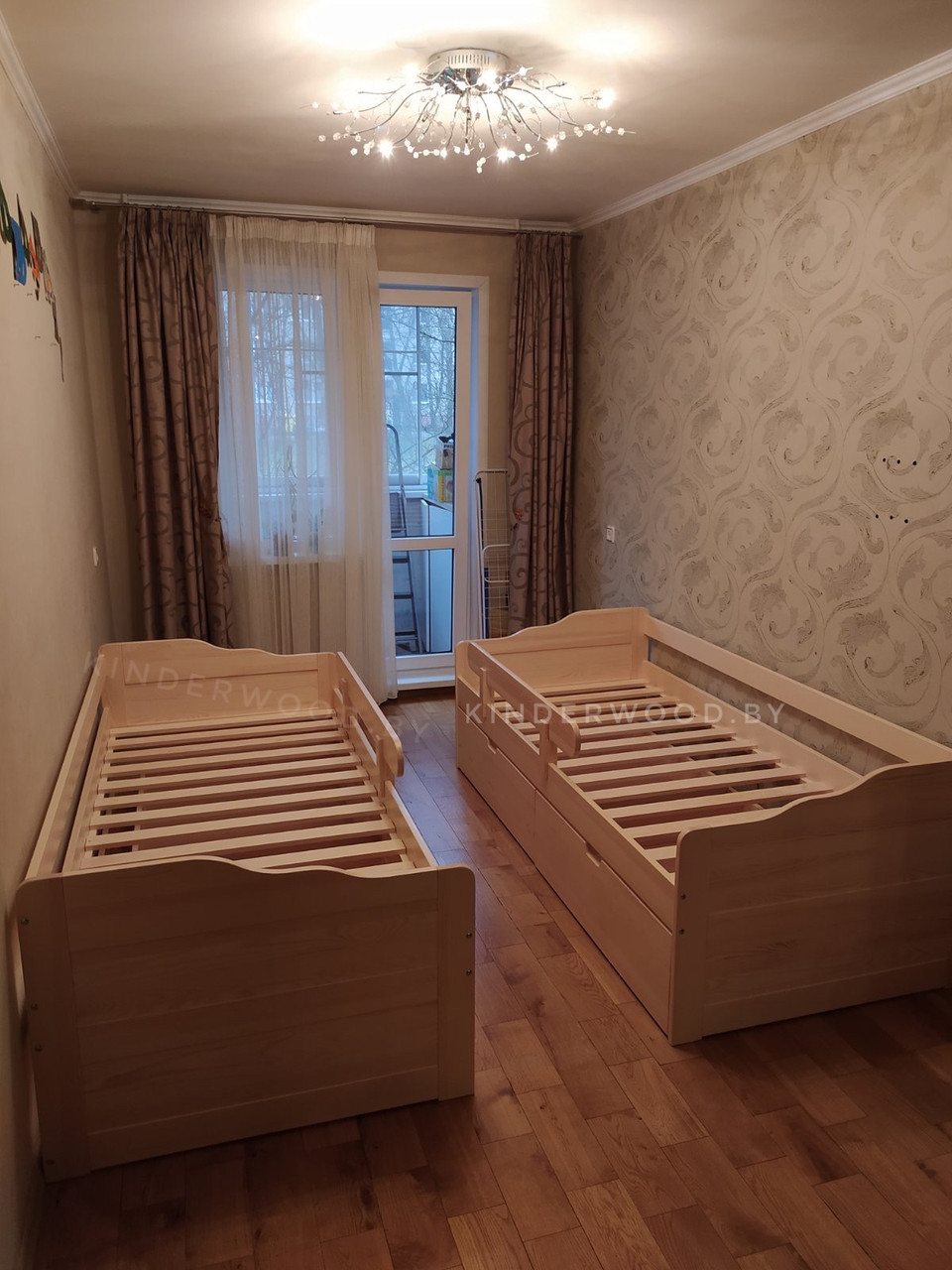 код 149996Спальное место: 200х90 см. Материал: массив сосны. Возможно изготовление в других размерах.
